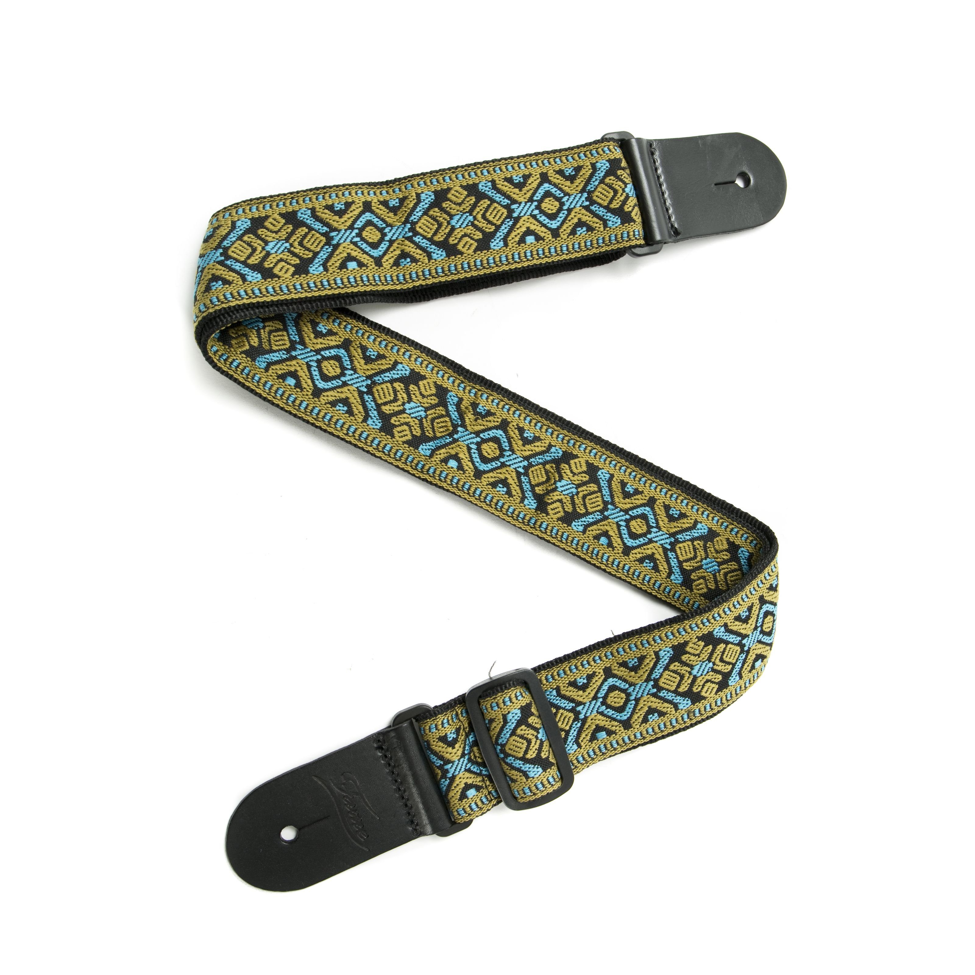 Fame Weave Series Instrumentengurt im blau/goldenen Baroque Pattern 3 Design mit 50mm Breite und stufenlos verstellbarer Длина bis 150cm.