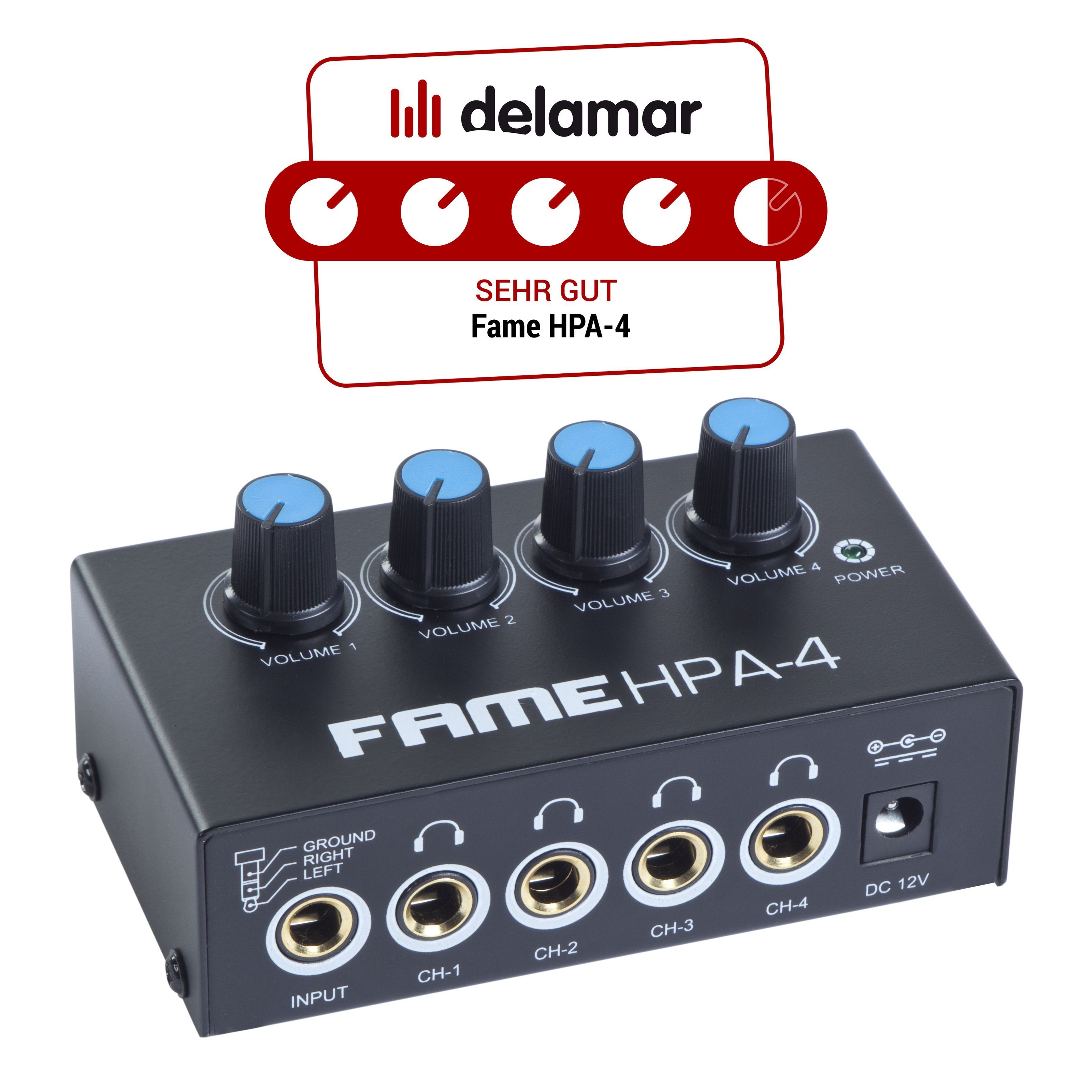 Lieferumfang | Fame Audio HPA-4: Hochwertiger Kopfhörerverstärker, ideal für Bühne und Studio. 4 Kopfhörereingänge mit separater Lautstärkeregelung, ideal für Podcasts oder Studiomusik. Ausgestattet mit 6,35mm Klinke TRS Stereoeingang und 6,3 Stereoklinken-Ausgängen. Verzerrungsfreie Wiedergabe bei hohen Lautstärken dank rauscharmer, leistungsstarker Stereoendstufen. Inklusive Netzteil für zuverlässige Stromversorgung, 'SEHR GUT' bei Delamar bewertet. MS-ID: REC0011864-000 Hersteller: Fame Audio Farbe: Schwarz Farbbezeichnung: Schwarz Kopfhörereingänge: 4 DAC: Nein Einsatzbereich: Bühne/Studio Stereoeingang: 6,35mm Klinke TRS Inkl. Zubehör: Netzteil |