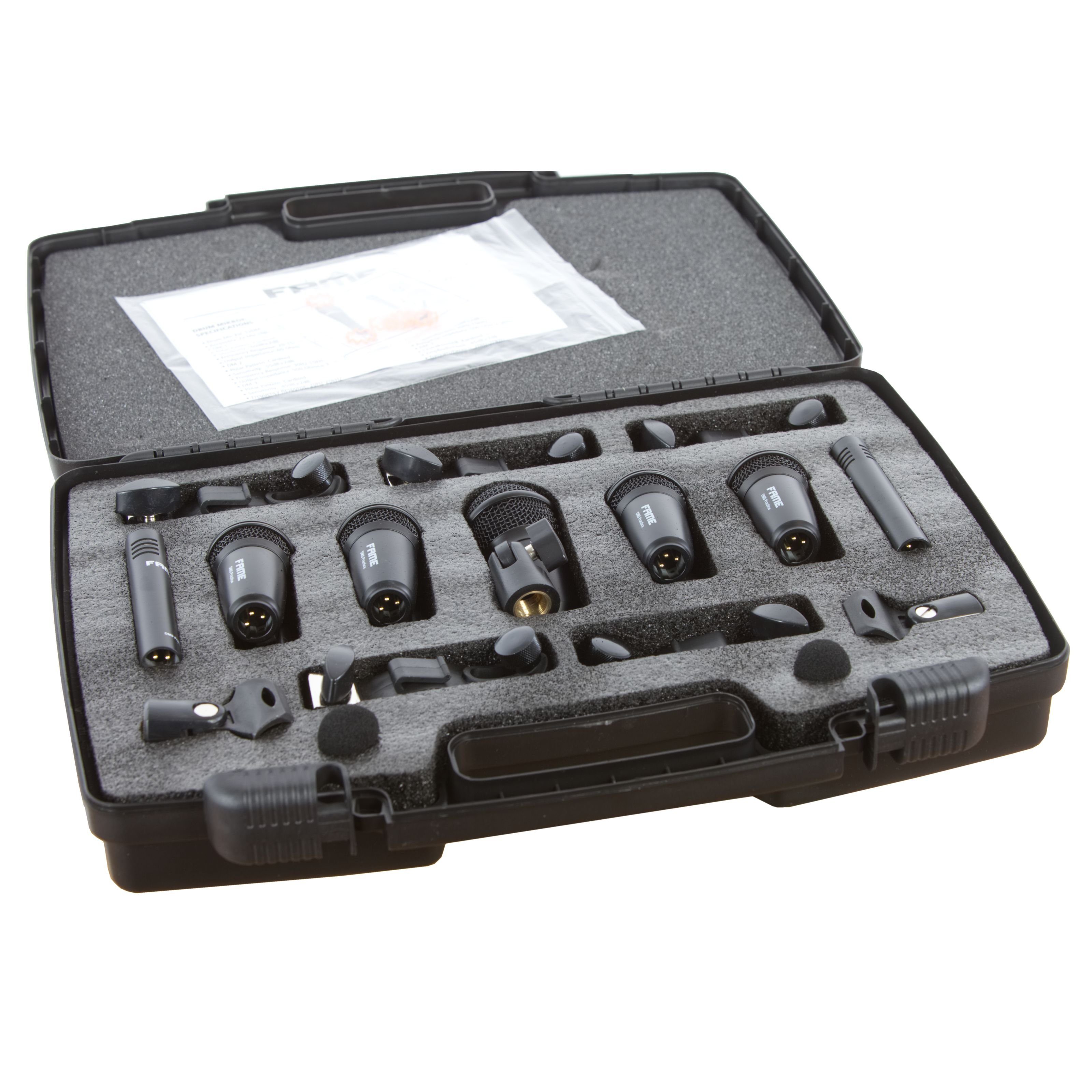 Lieferumfang | 7-teiliges Fame Drum Mikrofon Set 'Practice' - Perfekt abgestimmt auf die Frequenzen eines Schlagzeugs für eine klare und unverfälschte Klangwiedergabe. Ideal für Proberaum-Aufnahmen und kleinere Sessions. Komplettes Mikrofon-Set für Drumsets - Enthält ein Bass Drum Mic, vier Tom/Snare Mics und zwei Overhead Mikrofone für die Becken. Einfache Befestigung an jedem handelsüblichen Ständer dank mitgeliefertem Gewinde. Inklusive Mikrofonklemmen für die Befestigung am Drum-Kessel - Ermöglicht eine flexible und sichere Positionierung der Mikrofone für optimale Klangqualität. Ausgestattet mit XLR-Anschlüssen - Sorgt für eine stabile.