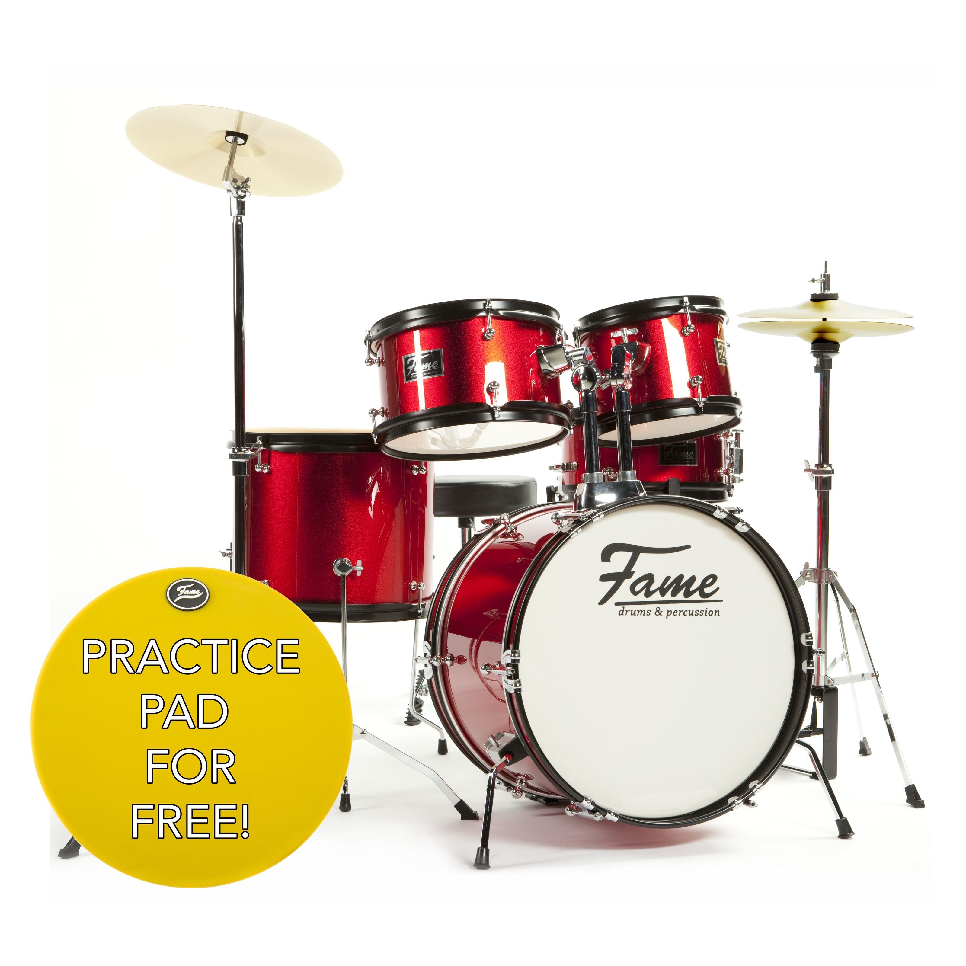 Lieferumfang | DAS PERFEKTE SCHLAGZEUG: Kompaktes Schlagzeug im Komplettpaket, bestehend aus fünf Trommeln, zwei Becken, Stativen, Schlagzeughocker und Drumsticks. KESSEL AUS HOLZ MIT TOLLEM SOUND: Das Fame Drum-Set kommt mit hochwertigen Holzkesseln, jede Trommel ist mit hochwertiger Folie in bezogen und lässt sich stimmen, so findet man beim Schlagzeugspielen den richtigen Drumsound. SCHLAGZEUG MIT BECKEN: Komplette HiHat mit Stativ und ein kleines Becken mit Ständer bieten authentischen Sound und prägnante Ansprache. Professioneller Drum Sound!. SCHLAGZEUG ÜBEN ZUHAUSE: Das Fame Drumset 5 PC Red bietet ein hochwertiges Instrument mit exzellentem Sound für alle, die Zuhause musizieren möchten. Ideal als Geschenk!. Schlagzeug Kit mit Zubehör: Höhenverstellbarer Hocker und Holz-Drumsticks. Stative und Trommeln stufenlos anpassbar auf die Körpergröße. MS-ID: DRU0032644-000 Hersteller: Fame Konfiguration: Mit 16" BassDrum Kesselmaterial: Mischholz Kesseloberfläche: Folie Farbe: Rot Farbbezeichnung: Red Sparkle: Ja Kessel-Hardware: Chrom Spannreifenmaterial: Stahl BassDrum mit Rosette: Ja Размер Tom 1: 8" x 6" Размер Tom 2: 10" Размер Floor Tom 1: 12" x 10" Размер Snare: 10" x 5" Размер Bass Drum: 16" x 11" inkl. Hardware: Ja inkl. Becken: Ja inkl. Tomhalter: Ja |