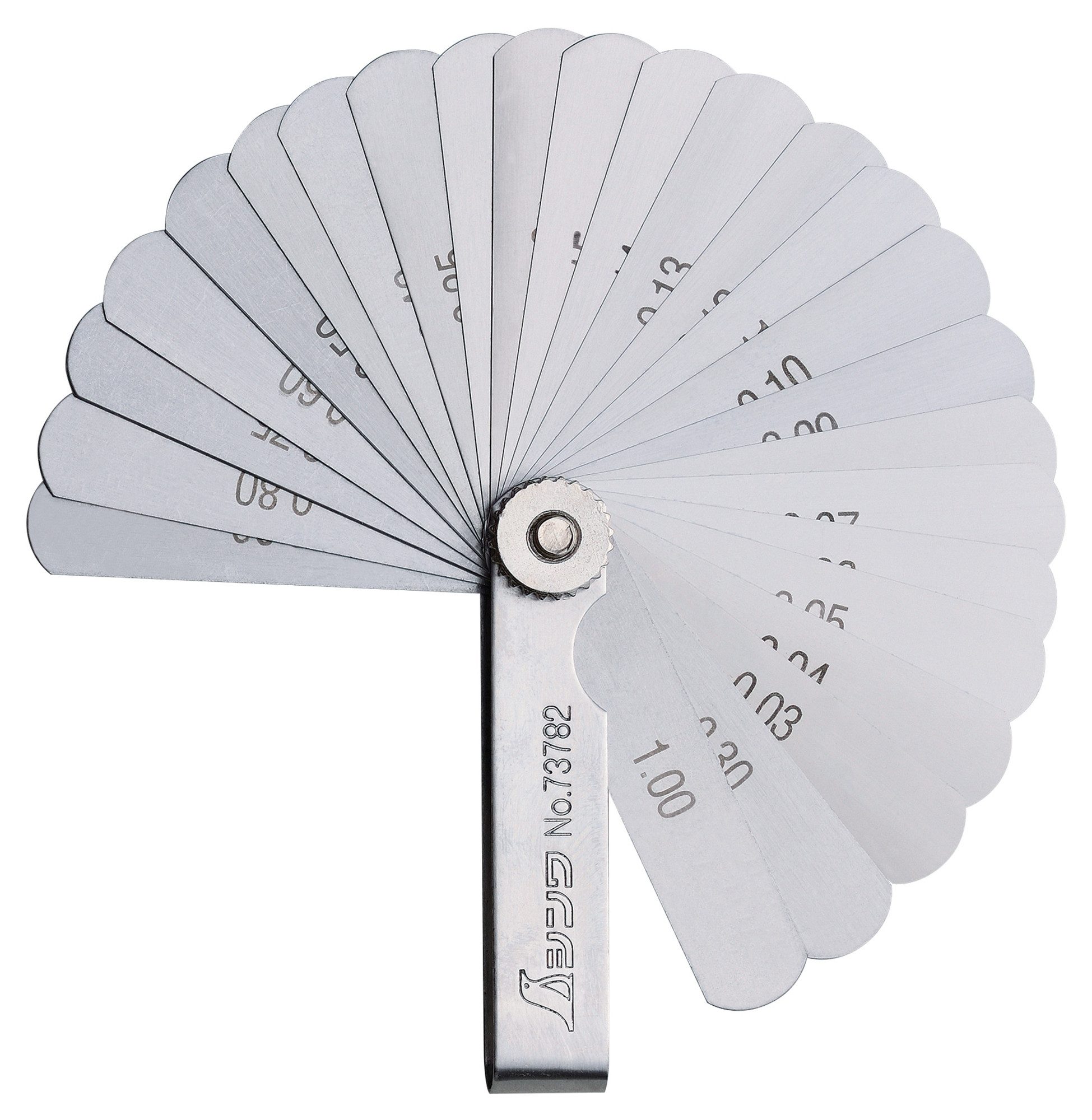 Vielseitige Fühlerstärken: Der dünnste Fühler hat eine Stärke von 0,03 mm, der dickste eine Stärke von 1 mm, um unterschiedlichste Spaltmaße zu bestimmen.