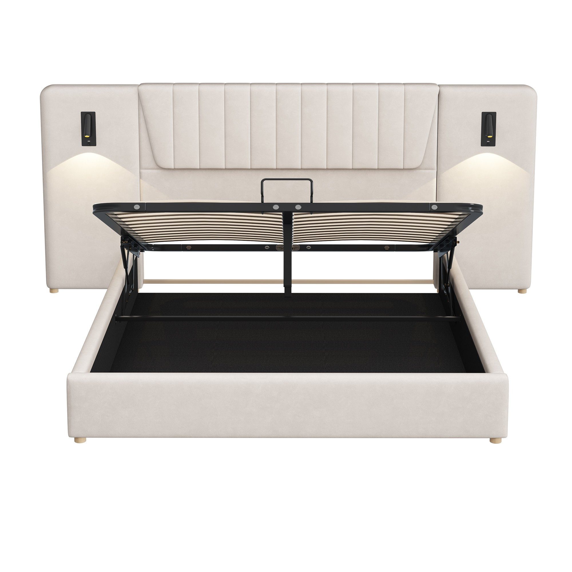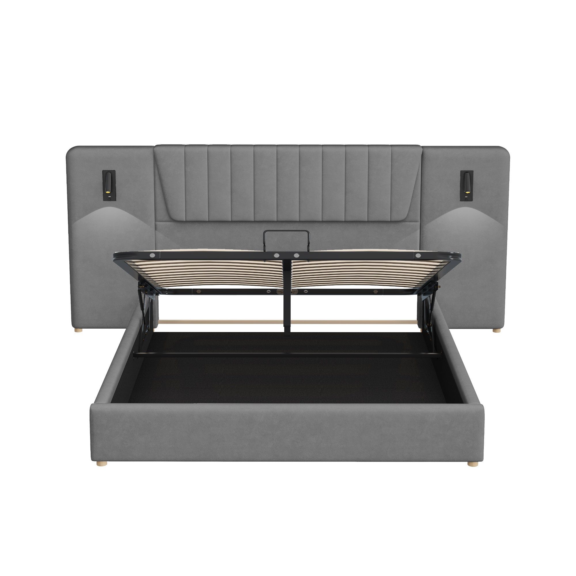 Dieses luxuriöse Doppelbett kombiniert modernes Design mit praktischen Funktionen wie schwenkbaren Leselampen und integriertem Stauraum. Es bietet nicht nur maximalen Komfort, sondern auch eine stilvolle Optik, die Ihr Schlafzimmer in einen perfekten Rückzugsort verwandelt. Ideal für alle, die Wert auf Qualität, Funktionalität und Ästhetik legen!