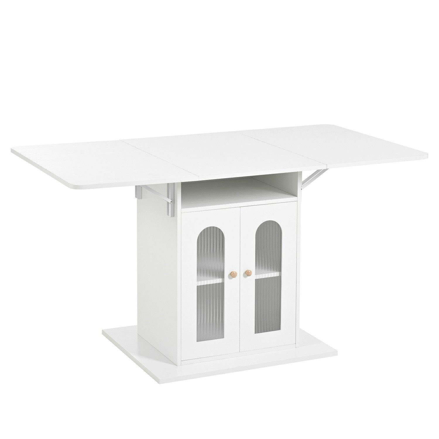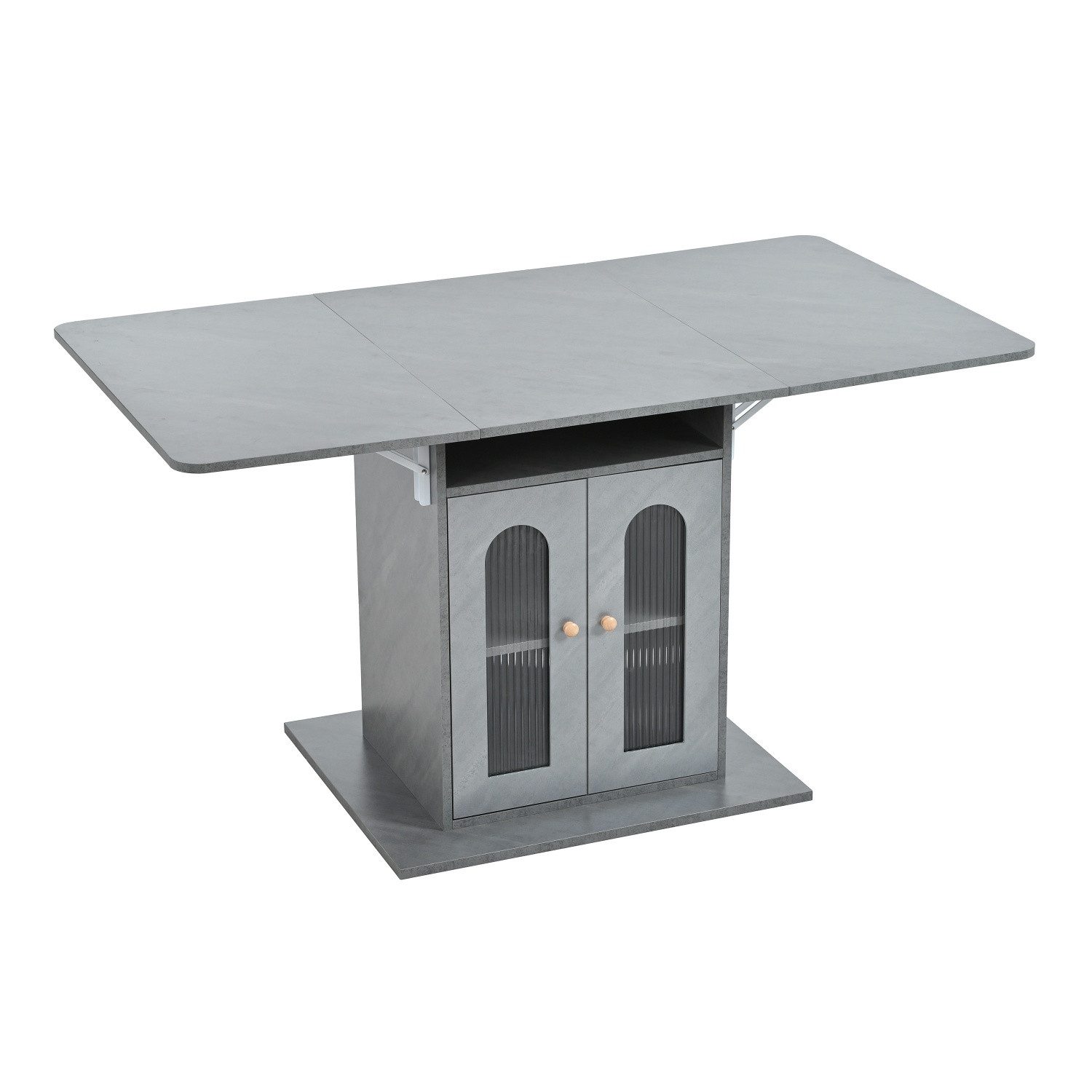 Praktische Stauraumfunktion: Dieser Esstisch bietet praktischen Stauraum, wobei der Schrank unter dem Tisch Platz für Besteck, Gläser, Dekorationen und mehr bietet.