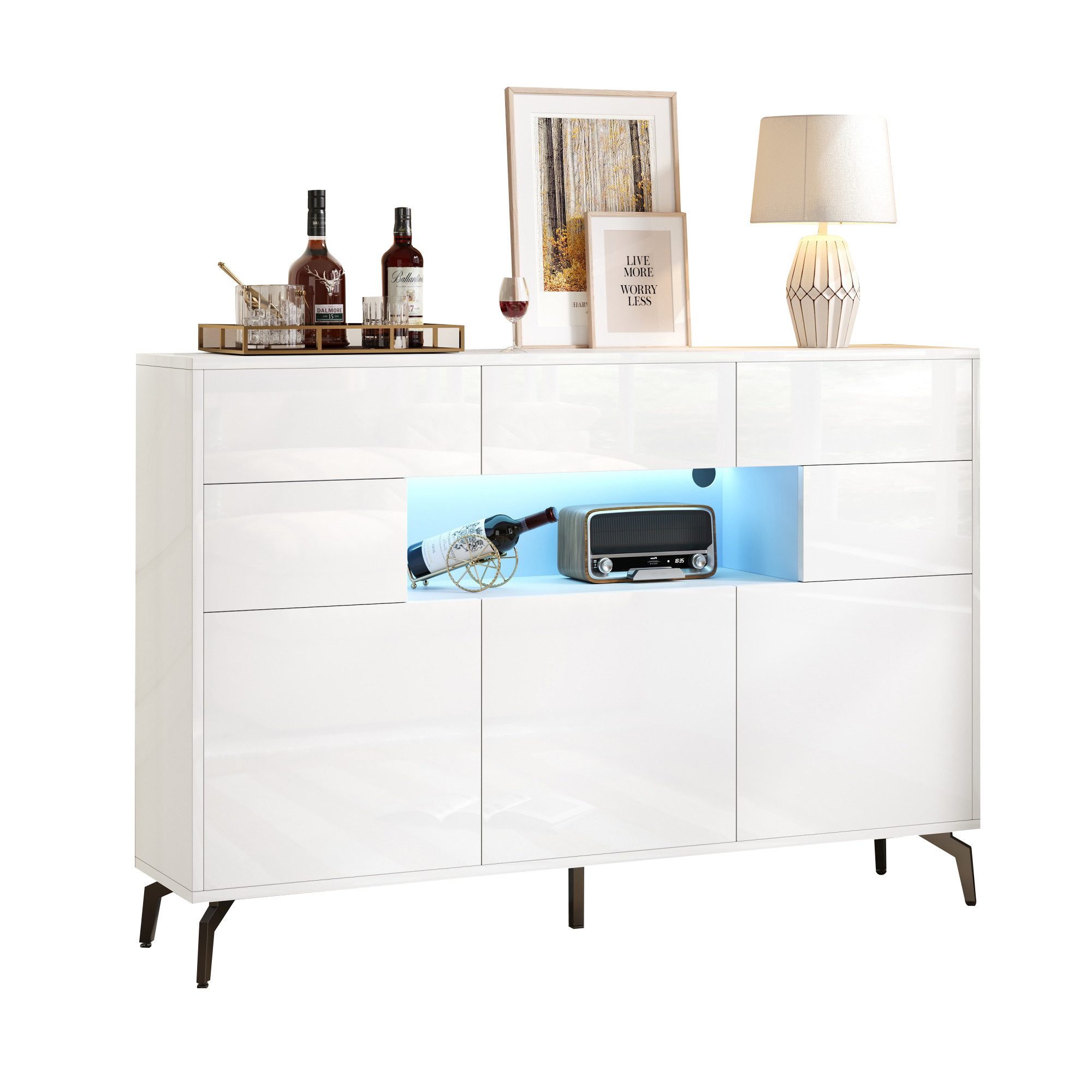 Halboffener Mittelbereich mit integrierter LED-Beleuchtung - perfekt für häufig genutzte Gegenstände oder dekorative Stücke