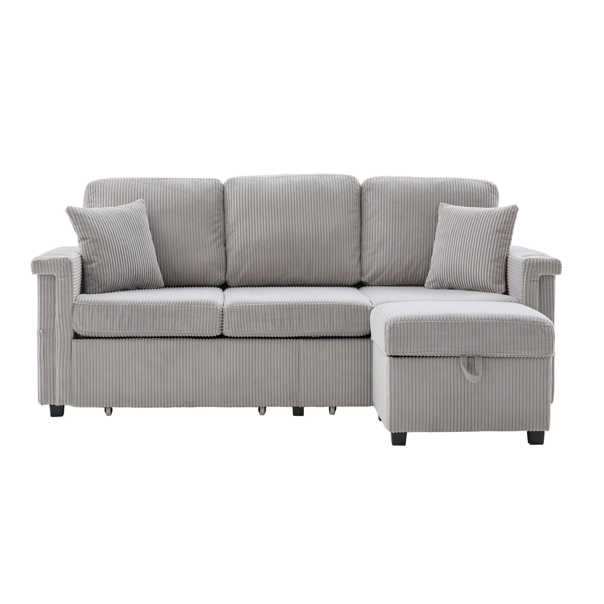 Der multifunktionale Fußhocker ist mit verstecktem Stauraum und Rollen ausgestattet. Er verfügt über eine Fußstütze, die sich leicht in eine Beinstütze oder einen Beistelltisch verwandeln lässt. Er spart Platz, bietet Platz für Kissen oder Kinderspielzeug und kann je nach Bedarf frei platziert werden.