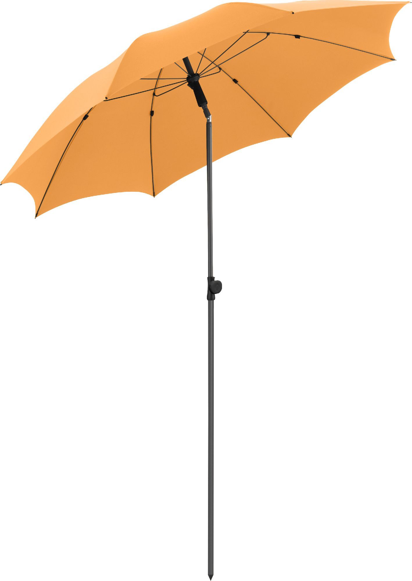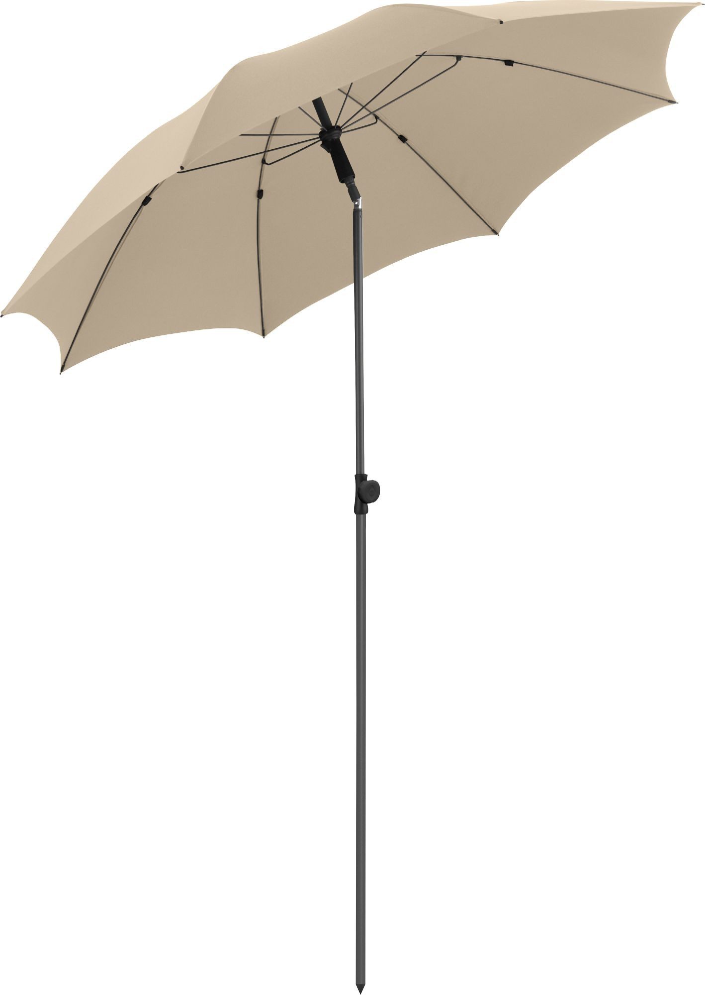 Dank der stufenlosen Höhenverstellung und Knickvorrichtung passt sich der Schirm mühelos Ihrer Wunschposition an und spendet genau dort Schatten, wo Sie ihn brauchen. Der hochqualitative Bezug mit einer Grammatur von ca. 200 g/m² und UPF 50+ schützt zuverlässig vor schädlicher UV-Strahlung - für unbeschwerte Stunden im Freien.