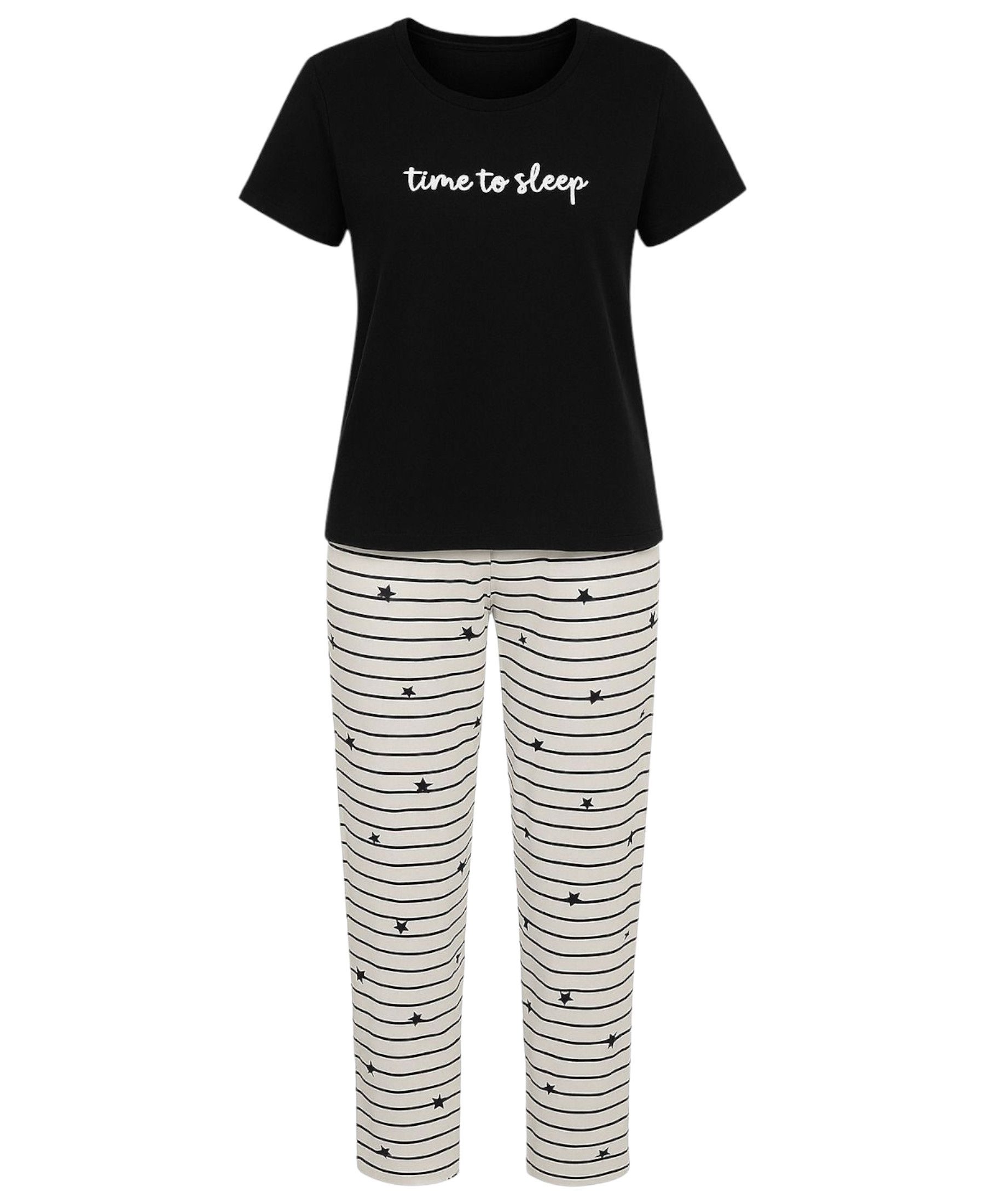 Optik | Bedruckt mit Schriftzug auf dem Oberteil, gestreifte oder gemusterte Hose |