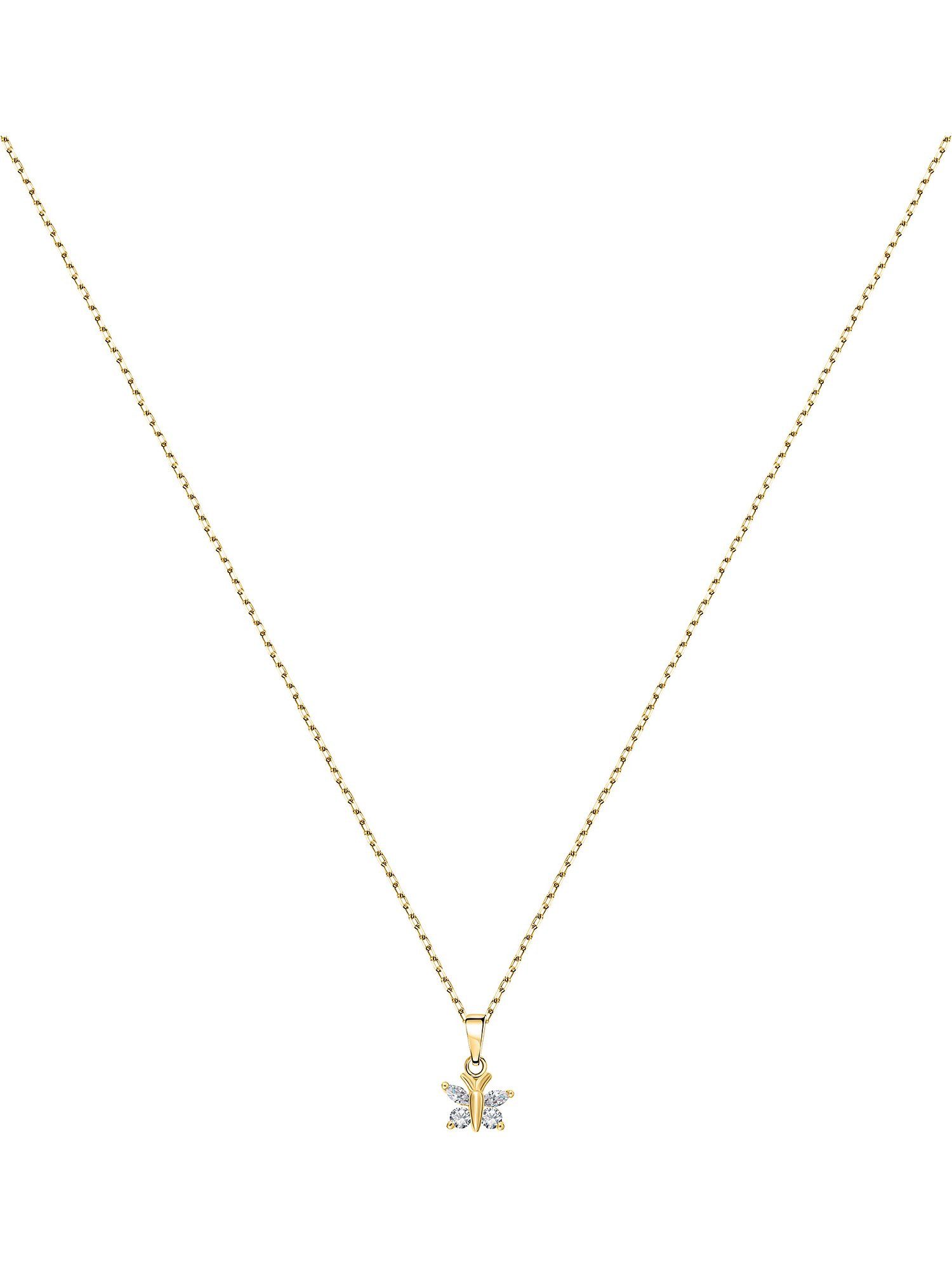 Ein Schmetterling so andächtig wie eine Fee – ihn hat FAVS in diesem bezaubernden Schmuckstück eingefangen. Die Kette aus Gelbgold braucht nicht viel, um aufzufallen, außer einen zarten Anhänger. Den Körper des Schmetterlings bildet ein goldenes Element, während die feinen Flügel von weißen Zirkonia geschmückt werden. Du möchtest deinem schicken Dinnerlook einen romantischen Touch verleihen? Hiermit gelingt es dir!