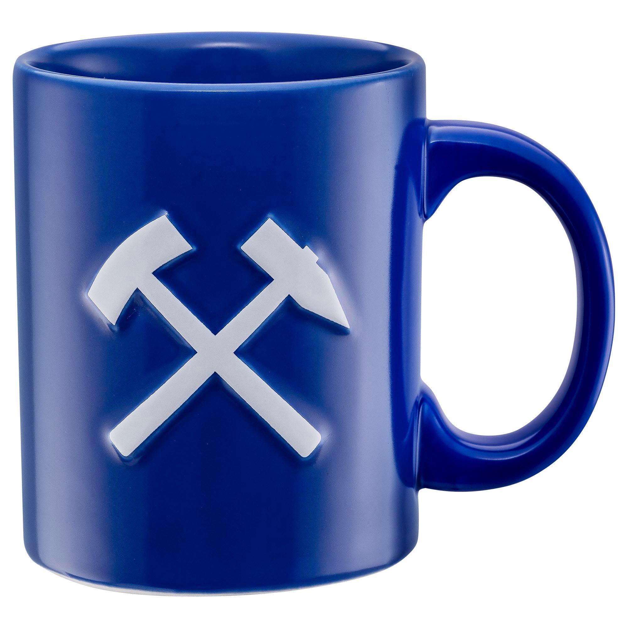 Der Kaffeebecher ist Königsblau und liegt gut in der Hand. Auf der einen Seite befindet sich ein Schlägel und Eisen-Symbol in Weiß, dass leicht erhaben ist und sich dadurch vom Hintergrund abhebt. Auf der anderen Seite ist unser Schalke-Logo zu sehen, dass sich ebenfalls leicht abhebt. Wow - was eine coole Tasse! Damit startest Du gleich 04-mal besser in den Tag und Deinem Lieblingsverein in der Hand. Glück auf.