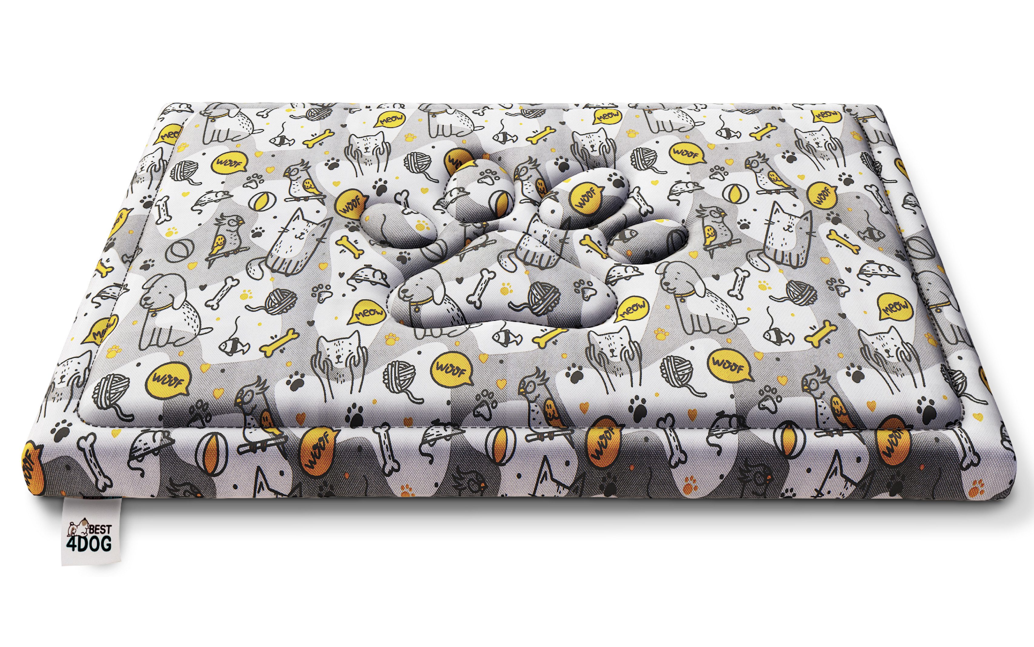 Jeder Hund, unabhängig von seiner Größe, verdient seinen eigenen Platz zum Ausruhen - eine Ecke, in der er sich nach einem anstrengenden Spaziergang, einem Spiel oder einer sättigenden Mahlzeit entspannen kann. Die Wahl des richtigen Bettes ist sehr wichtig, um den Komfort und das Wohlbefinden unseres vierbeinigen Freundes zu gewährleisten. Die angebotene Matratze ist geräumig genug, um auch Hunden größerer Rassen ein bequemes Ausruhen zu ermöglichen. Sie ermöglicht es dem Tier, eine Position einzunehmen, die für seine Muskel- und Skelettgesundheit vorteilhaft ist. Unsere Matratze bietet Ihrem Hund die Freiheit, seine Schlafposition zu verändern, egal ob er es vorzieht, längs oder seitlich zu liegen oder sich in einer Kugel zusammenzurollen. Außerdem sorgt eine rutschfeste Matte auf der Unterseite des Bettes für Stabilität und verhindert ein Verrutschen. Unsere Hundematratze wird mit einem wasserdichten Bezug geliefert, der bei Verschmutzung durch den praktischen Reißverschluss einfach abgenommen und in der Waschmaschine gewaschen werden kann. Eine Besonderheit ist der elegante Stoff, der mit silbernen Mustern verziert ist, die von der Welt der Hunde inspiriert sind und dem Hundebett einen raffinierten Look verleihen, der zu jedem Interieur passt - sowohl stilvoll als auch minimalistisch.