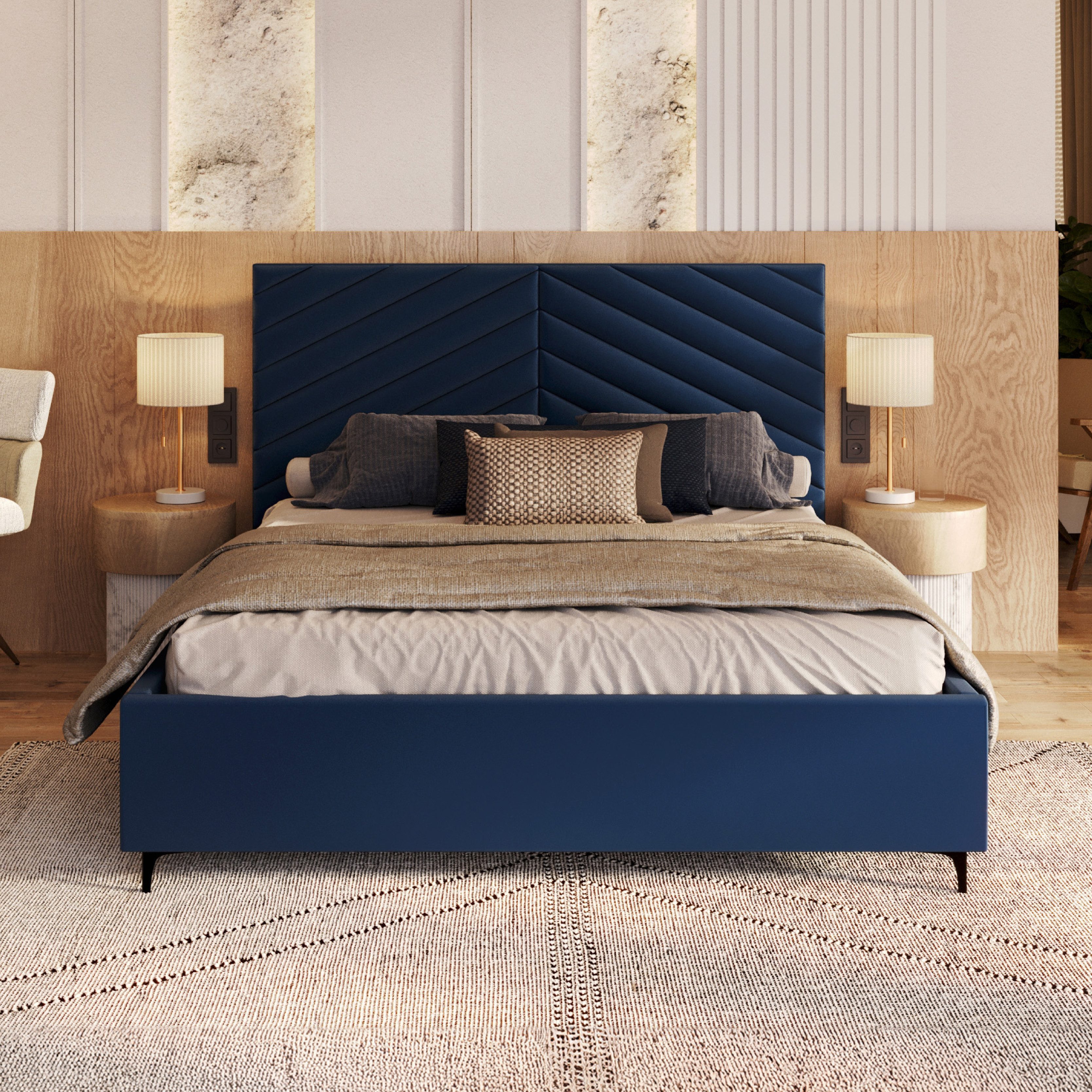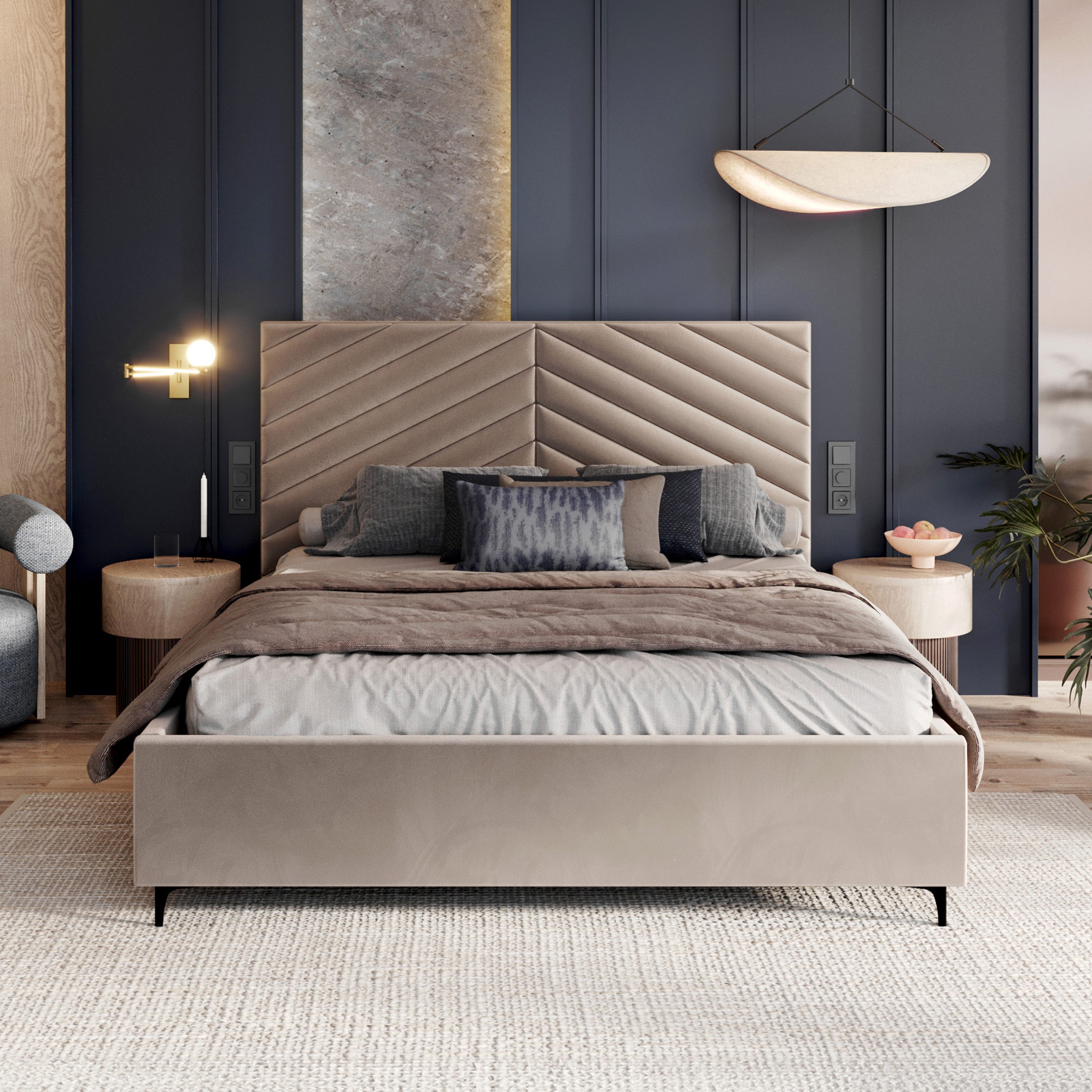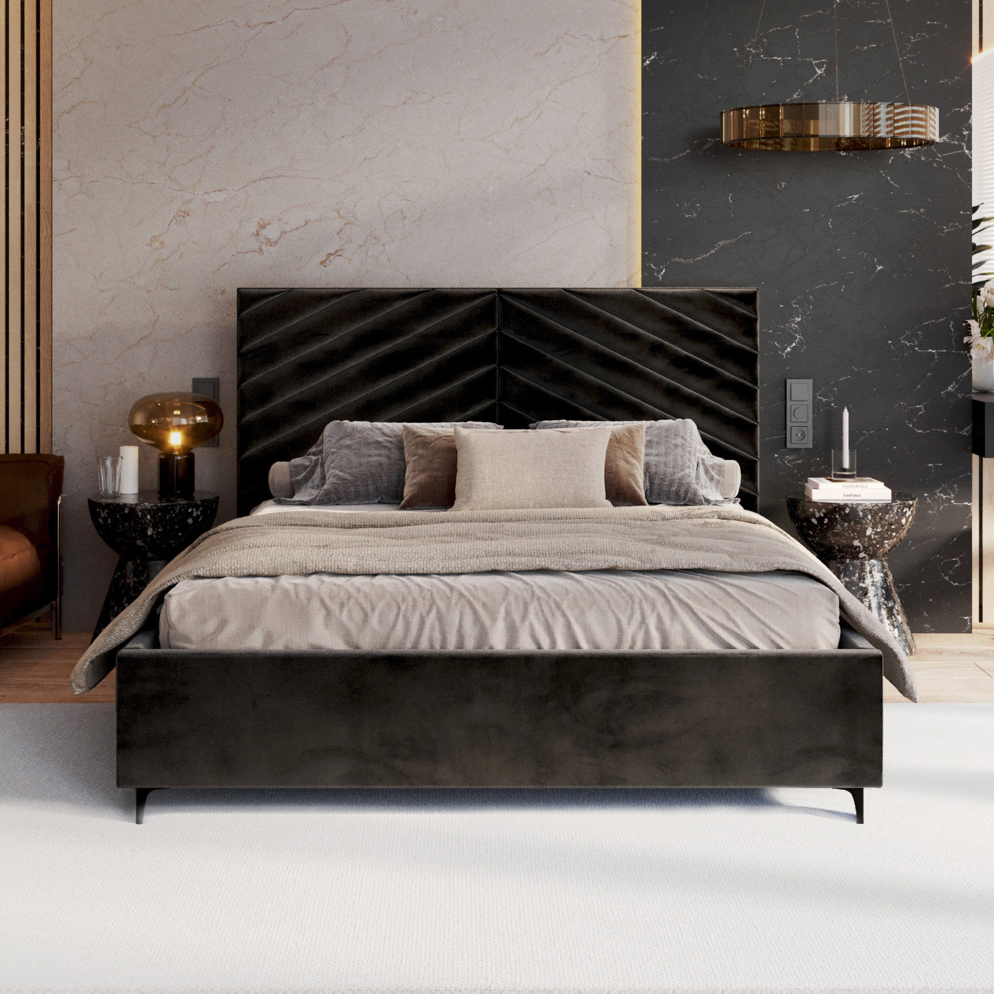 Das Polsterbett MISTERO überzeugt durch sein elegantes und geradliniges Design, das moderne Schlichtheit mit funktionaler Raffinesse verbindet. Die stabile Konstruktion aus robuster MDF-Platte sowie ein solider Metallrahmen mit elastischen Birken-Federleisten sorgen für Stabilität und langanhaltenden Komfort. Der Bezug aus hochwertigem Paris-Velours fühlt sich besonders weich an und ist dank hydrophober Beschichtung resistent gegen Feuchtigkeit und alltägliche Verschmutzungen – ideal für stilbewusste Haushalte.