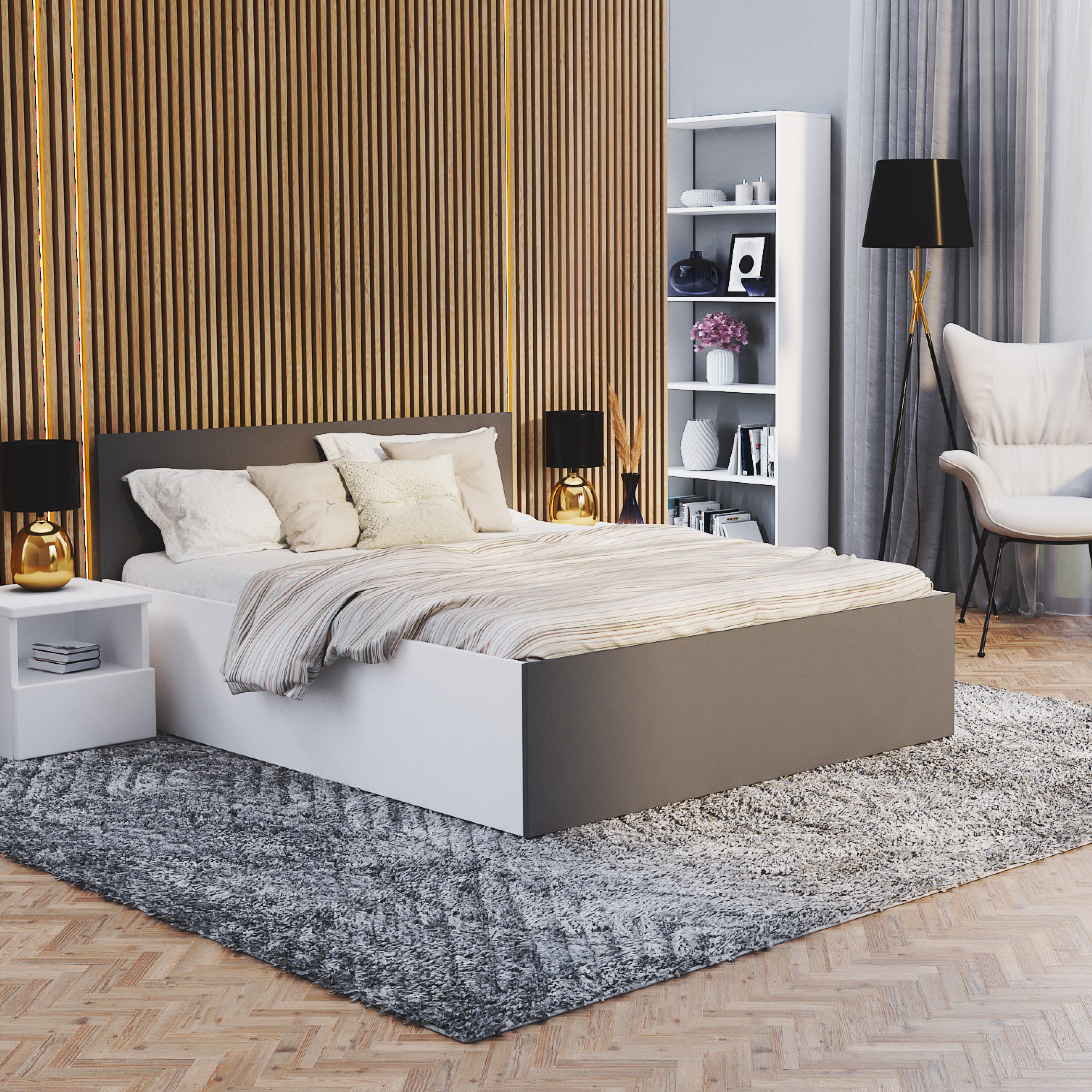 Dank seines minimalistischen Designs lässt sich das Bett mühelos mit unterschiedlichen Einrichtungsstilen kombinieren – von skandinavisch über industriell bis hin zu modern-puristisch.