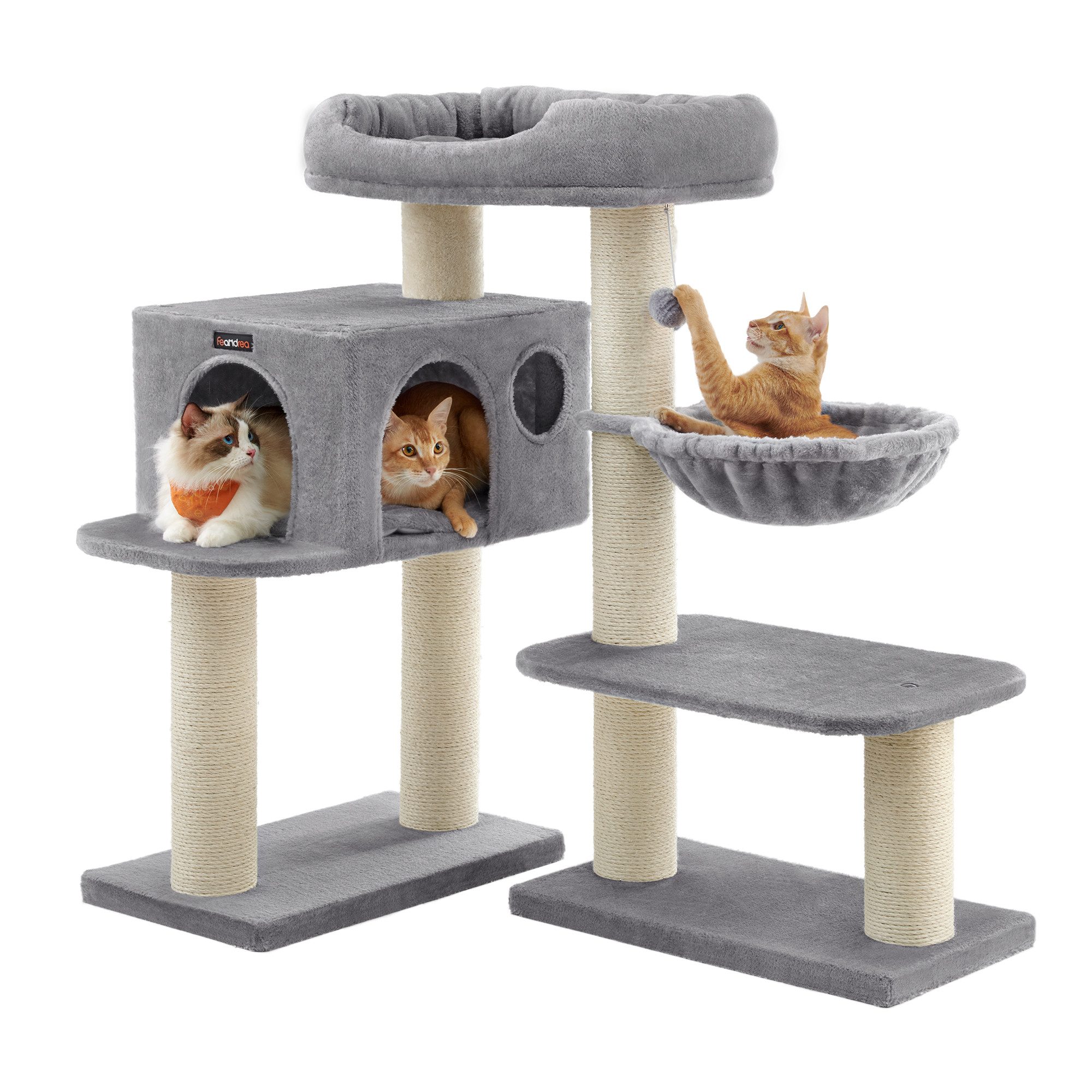 Daneben fühlten sich die beiden Tester sicher und sprangen ohne Angst von Plattform zu Plattform. Für die hohe Stabilität dieses Kratzbaums sorgen vor allem die extra dicken Sisalstämme und die doppellagige Bodenplatte. Auch ein Kippschutz wird mitgeliefert.