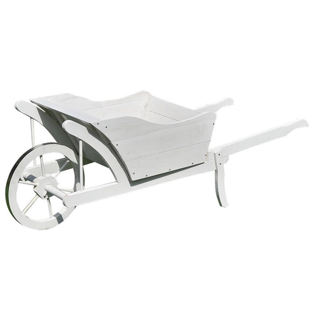 In traditionellen Blumenkästen sind Ihre Pflanzen zwar gut aufgehoben, doch perfekt zur Geltung kommen sie dort meistens nicht. Wenn Sie das ändern möchten, begeistert Sie diese einzigartige Kreation. Der Blumenkasten überzeugt durch seine Schubkarren-Form und ist so dekorativ wie kaum ein anderer Pflanzenkübel. Das Holz-Modell ist im vorderen Bereich mit einem klassischen Rad und mehreren Halterungen versehen. Der leicht geschwungene Blumenkasten befindet sich in dem Schubkarren-Gestell und bietet Ihnen reichlich Platz. Ob hängende Pflanzen oder Blumen in allen Farben der Natur - hier ist alles erlaubt. Perfektioniert wird der edle Landhausstil des Modells durch die beiden Griffe sowie den hellen, leicht gelblichen Farbton.