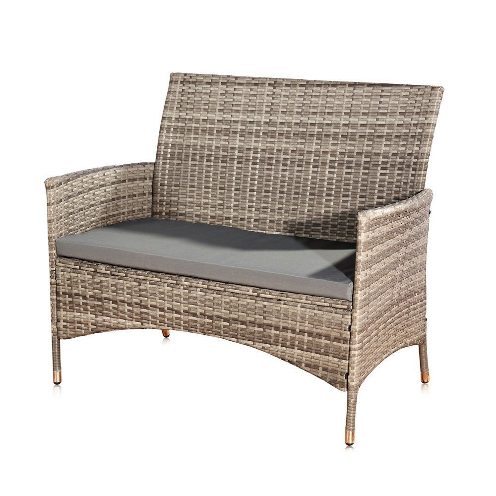 Mit dieser attraktiven Gartenbank erleben Sie entspannende Stunden am Lieblingsplatz Ihres Gartens. Aus Poly Rattan gefertigt, ist die Gartenbank perfekt für den Outdoorbereich geeignet. Das wetterfeste Material überzeugt mit guten Eigenschaften, die eine leichte Handhabung der Sitzbank ermöglichen. Grundlage bildet ein solides Metallgestell, das mit einem durchgehenden Flechtwerk verarbeitet ist und für Stabilität sorgt. Als Sitzmöbel ist die Bank eine wunderbare Ergänzung auf dem Balkon oder der Terrasse. Unter einem Schatten spendenden Baum lädt die Gartenbank zu wohlverdienten Pausen nach der Arbeit ein. In Schwarz gehalten, strahlt sie ein harmonisches Ambiente aus und lässt sich leicht mit weiteren Outdoormöbeln kombinieren. Hier im Loungebereich trifft sich die Familie auf der Gartenbank mit Tisch zum Beispiel auch unter einem Sonnenschirm. Die Gartenbank ist mit einem cremefarbenen Sitzkissen ausgestattet, das hohen Sitzkomfort bietet.