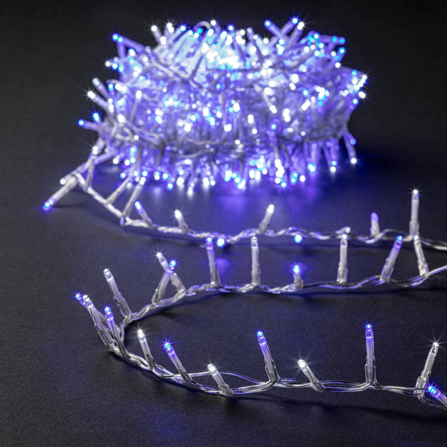Die Длина der Außenleuchten von Fééric Lights und Christmas beträgt 1550 Zentimeter, sodass sie perfekt sichtbar sind und gleichzeitig eine große Fläche abdecken. Sie können das Produkt auf den Balkon, die Terrasse oder an den Baum im Garten hängen. Es ist erwähnenswert, dass die Lichter eine blau-weiße Farbe haben können, sodass sie zu fast jeder Anordnung passen.
