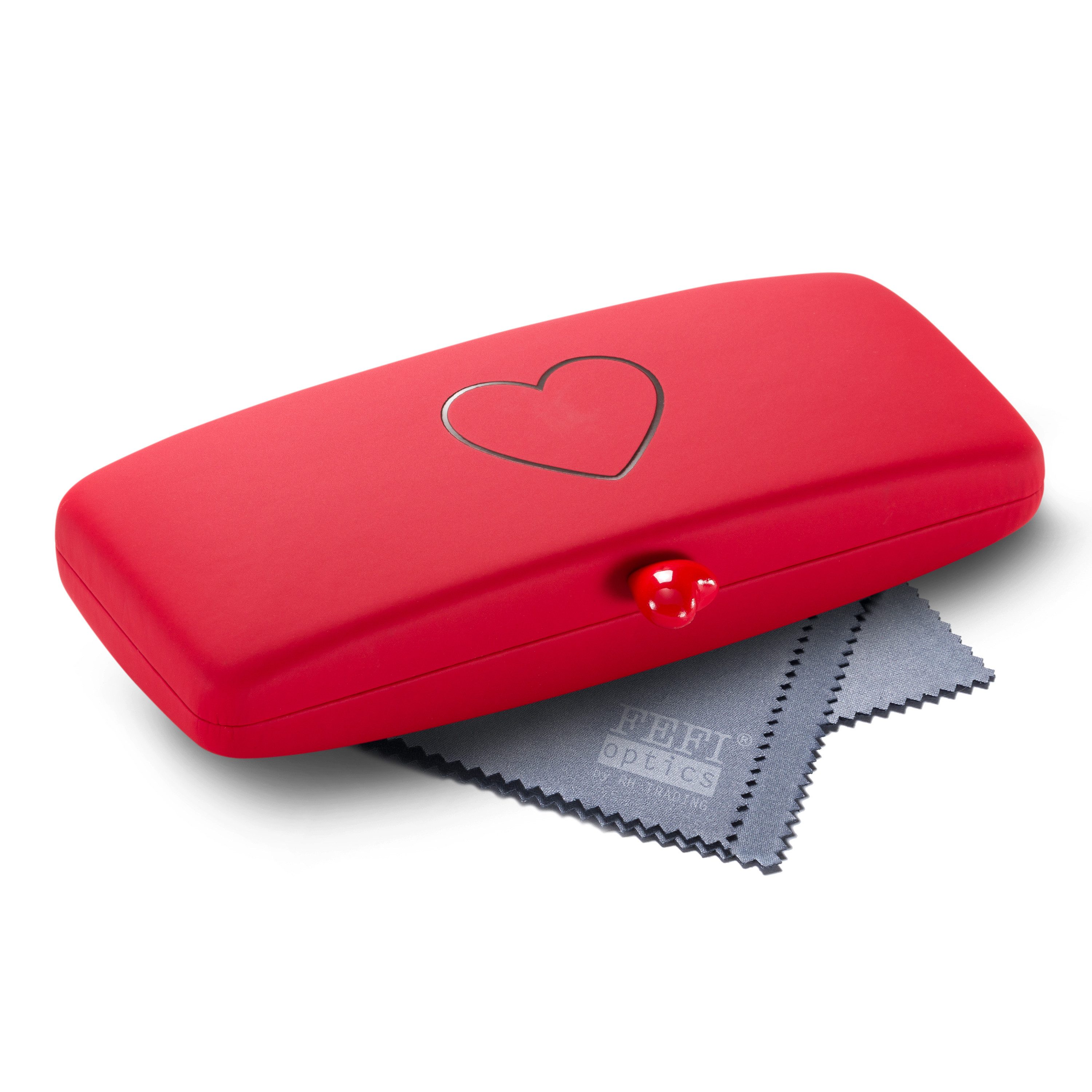 HOCHWERTIGE VERARBEITUNG – Stabiles Hardcase Etui mit Softtouch Oberfläche und geschraubter Herz-Applikation. Außenmaße: 160x63x35 mm, Innenmaße: 150x55x30 mm.