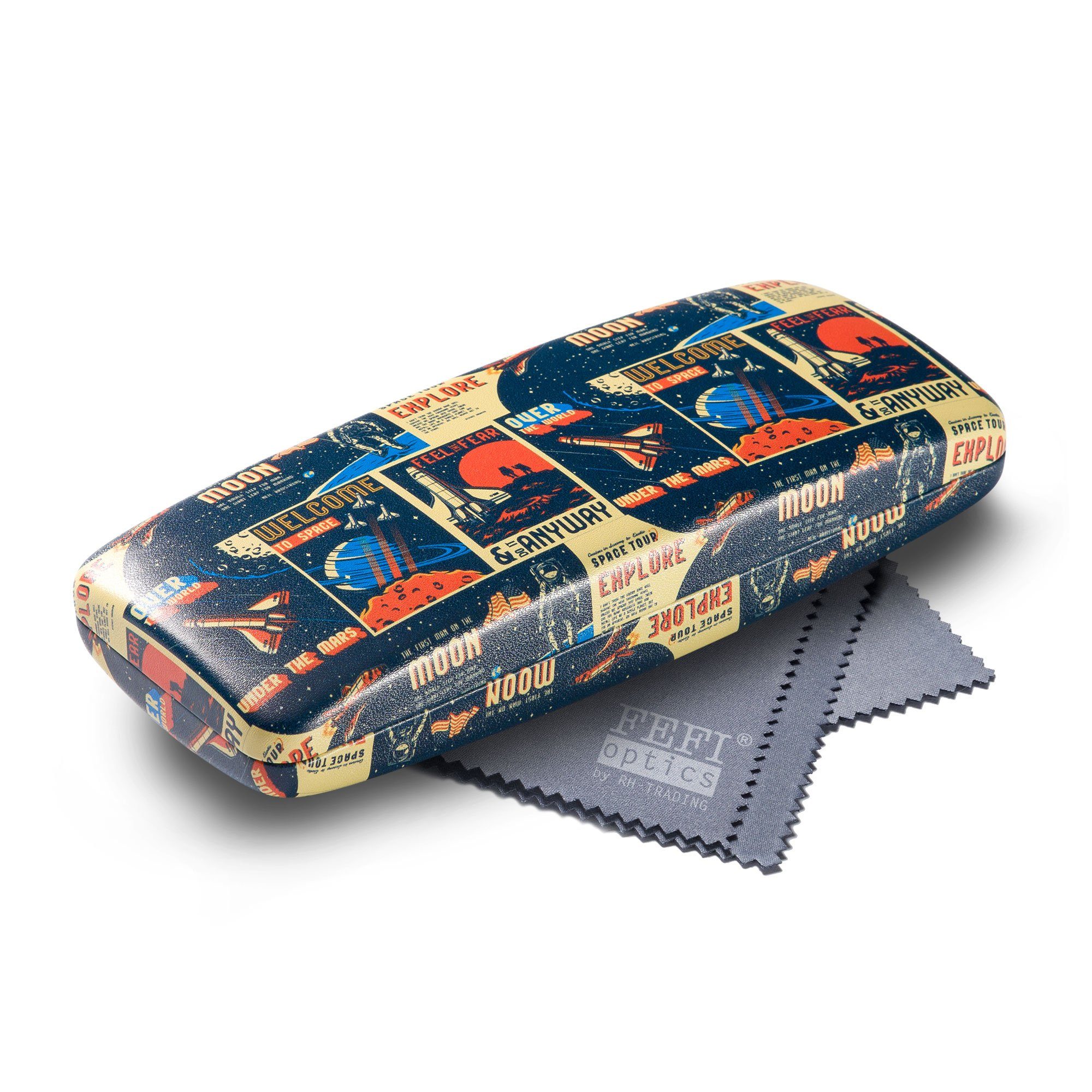 Das original FEFI Brillenetui im Vintage Design - inklusive Brillenputztuch - Neu in unserer Collection. Sicheren Schutz für Ihre wertvolle Brille garantiert dieses zuverlässige Hardcover Etui, und dazu sieht es noch extrem cool aus. Das Etui ist sehr sorgfältig verarbeitet und mit bedrucktem Kunstleder bezogen. Der zuverlässige Schnappverschluß hält Ihr Etui sicher geschlossen - bei Bedarf lässt es sich leicht öffnen. Innen sorgt ein blauer, samtartiger Bezug dafür, dass es keine Kratzer an den Gläsern gibt und Sie lange Freude an diesem tollen Etui haben werden. Im Set mitgeliefert, wird ein hochwertiges Mikrofasertuch in Optikerqualität, das sich wohlwollend von oft hauchdünnen, billigen anderen Tüchern unterscheidet. Das gelieferte Bundle besteht aus: 1 Etui + 1 Mikrofasertuch