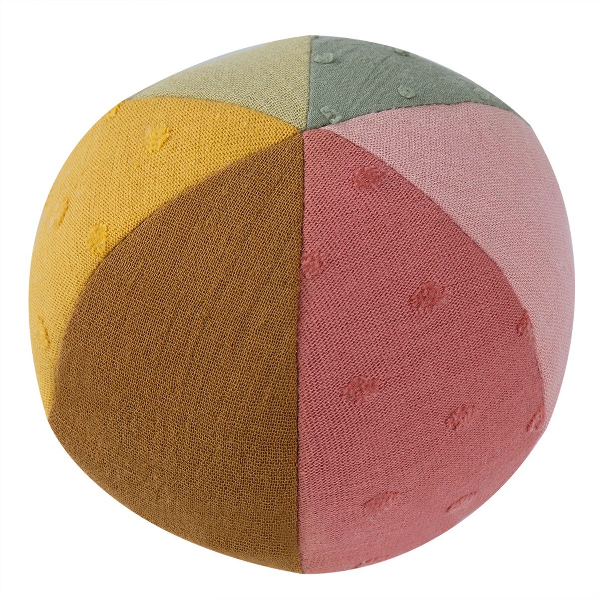 Wenn der kleine, weiche Spielball hin und her rollt und die Rassel dabei fröhlich klingelt, folgen ihm Babys Augen gespannt. Der kuschelweiche Stoffball unterstützt spielerisch Babys Geschicklichkeit, Hand-Auge-Koordination und Motorik durch erste Krabbel-, Wurf- und Fangversuche. Die Obermaterialien Musselin & Jersey und die Füllung des Stoffballs bestehen aus Bio-Baumwolle.