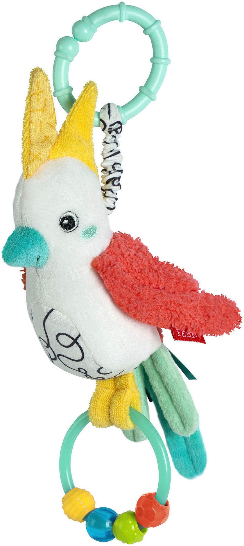 Baby Motorikspielzeug mit Perlenring für Kinderwagen, Kinderbett und Babyschale – zum Fühlen, Greifen und Geräusche erzeugen – Spielzeug für Babys und Kinder ab 3+ Monaten. Der Zwitscher-Vogel aus der DoBabyDoo Kollektion ist ein tolles Spielzeug für zuhause und unterwegs. Der kleine Kakadu hüpft an einem Gummiband fröhlich hin und her und macht dabei spannende Zwitscher Geräusche. Die Spielfunktionen des bunten Stoff-Vogels sorgen überall für gute Laune: Rassel, Tierstimme & Raschelpapier regen Babys Entdeckergeist & Neugier an und fördern die Sinne sowie die motorischen Fähigkeiten. Der Perlenring mit bunten Perlen und der weiche Materialmix aus Softvelours, Druckstoff, Bouclette, Frottee laden zum Greifen, Spielen und Fühlen ein. Der kuschelige Kuschel-Vogel lässt sich mit dem Befestigungsring flexibel anbringen und sorgt so für echtes Entertainment zuhause an Spielbogen und Babybett oder unterwegs in Kinderwagen und Babyschale während Ausflügen und Autofahrten. Damit wird der Stoff-Kakadu garantiert schnell zum besten Freund des Babys. Lernspielzeug mit Tierstimme, Rassel, Raschelpapier, Perlenring, Gummiband & Materialmix. Für Babys und Kleinkinder ab 3+ Monaten. Obermaterial: Softvelours, Bouclette, Druckstoff, Frottee. Füllung: Polyester.