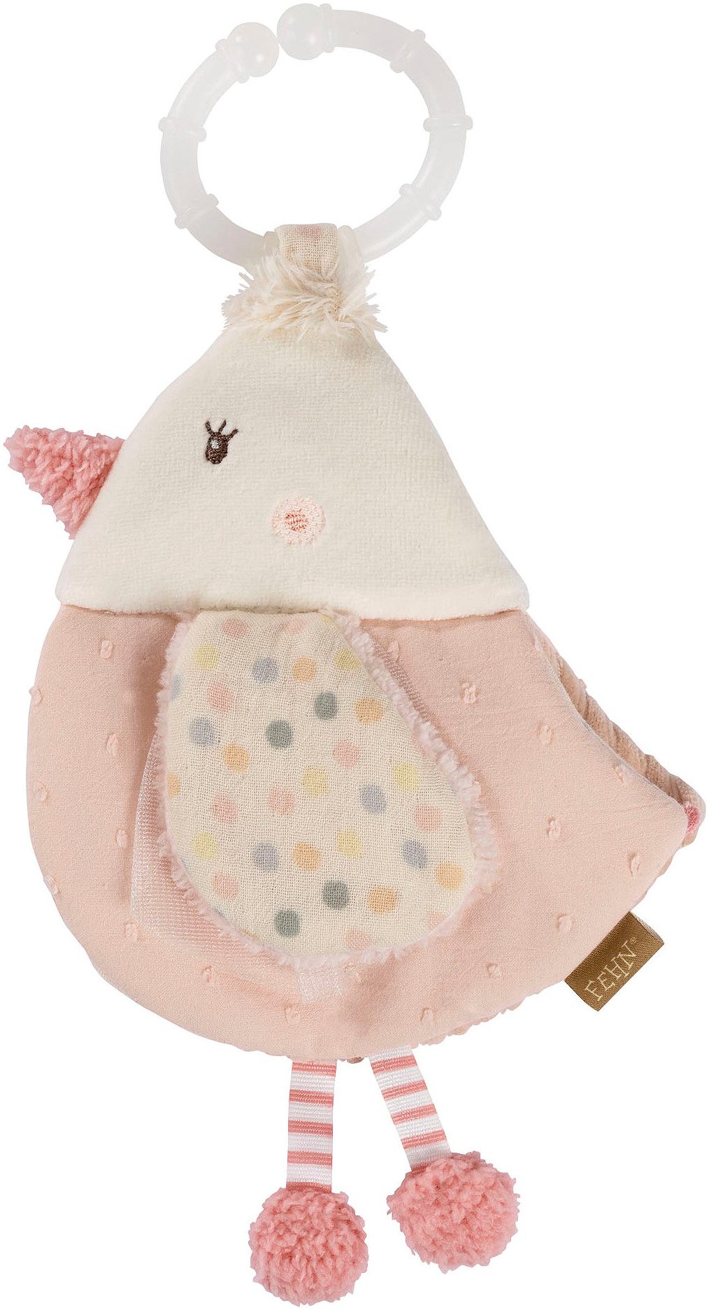 Fühlbuch in Vogel-Form: 4 Seiten in zarten Farben und mit spannenden Funktionen zum Fühlen, Greifen und Staunen - ein perfekter Begleiter für zuhause & unterwegs für Babys und Kleinkinder ab 0+ Monaten --- Der niedliche Vogel und seine zwei versteckten Freunde aus der feehnLAND Kollektion laden zum Entdecken, Forschen und Fühlen ein. Unter seinen Flügeln kuscheln die Rassel-Maus und der Raschelpapier-Schmetterling und zaubern mit dem kleinen Spiegel ein Staunen ins Gesicht des Babys. Das fördert erste Greifübungen, den Tastsinn und trägt zur positiven Entwicklung der Ich-Wahrnehmung bei. Die „Glow-in-the-dark“ Bestickung leuchtet im Dunkeln. Der Befestigungsring am kuscheligen Bilderbuch sorgt dafür, dass es ganz leicht und sicher an der Babyschale, am Kinderwagen, am Babybett oder im Auto befestigt werden kann. Für tollen Spielspaß egal ob Zuhause oder unterwegs! --- mit Rassel, Quietsche, Raschelpapier, Spiegel, Greifring, Materialmix & „Glow-in-the-dark“ Bestickung / für Babys und Kleinkinder ab 0+ Monaten / aus der feehnLAND Kollektion / ideal als Geschenk zur Geburt, Taufe oder als Geburtstagsgeschenk für Babys und Kleinkinder / von unabhängigen Testinstituten auf Sicherheit geprüft