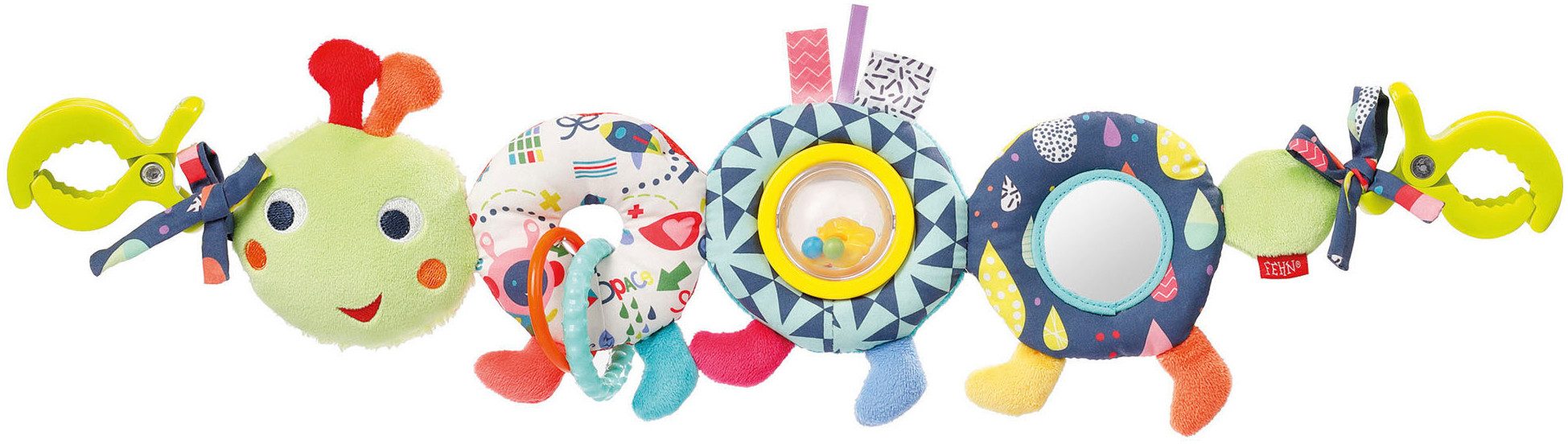 Ausstattung | Ballrassel Knisterpapier Quietsche Spiegel Zwei Greifringe Zwei Klemmen zur Befestigung |