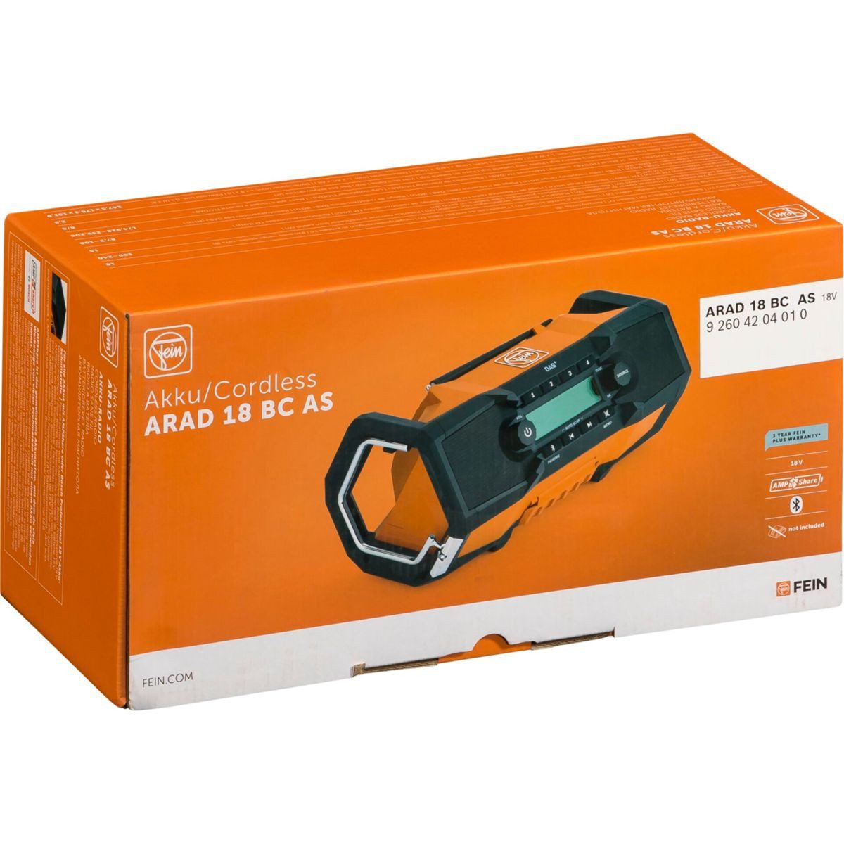 Lieferumfang | Fein ARAD 18 BC AS Akku-Baustellenradio + Zubehör laut Herstellerangabe |