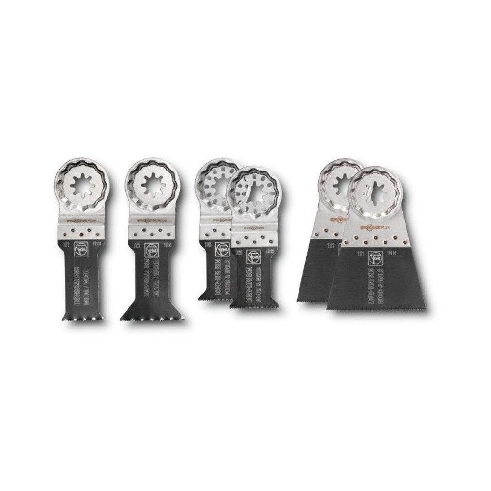 Inhalt: je 1 x E-Cut Universal Sägeblatt 28 mm und 44 mm breit sowie je 2 E-Cut Long-Life Sägeblätter 35 mm und 65 mm breit.