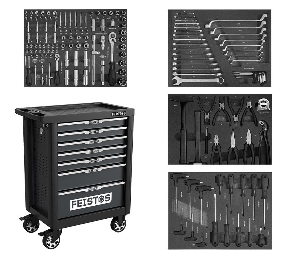 FEISTOS Mento 1 | Werkstattwagen | bestückt mit 158 Teilen | Schwarz | 47x77x96 cm