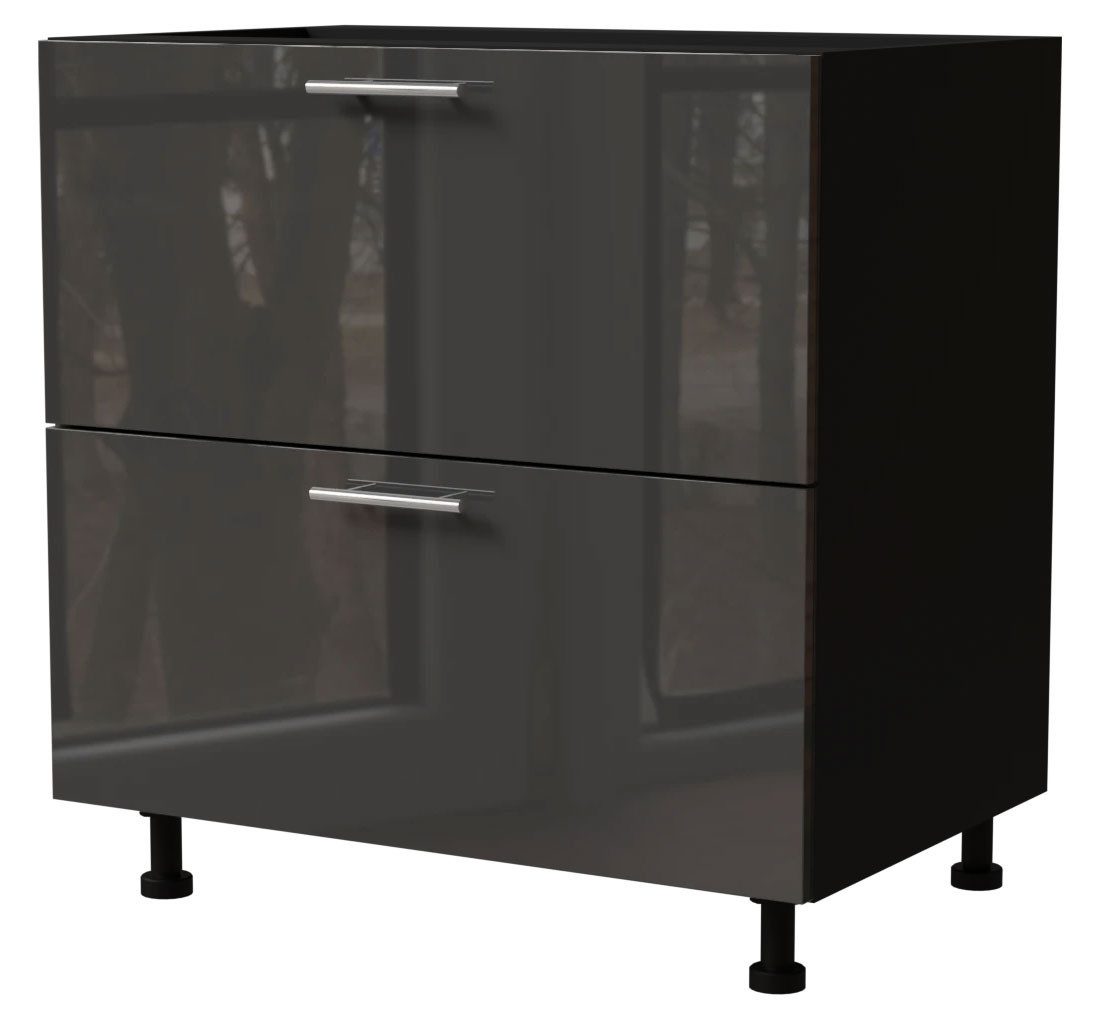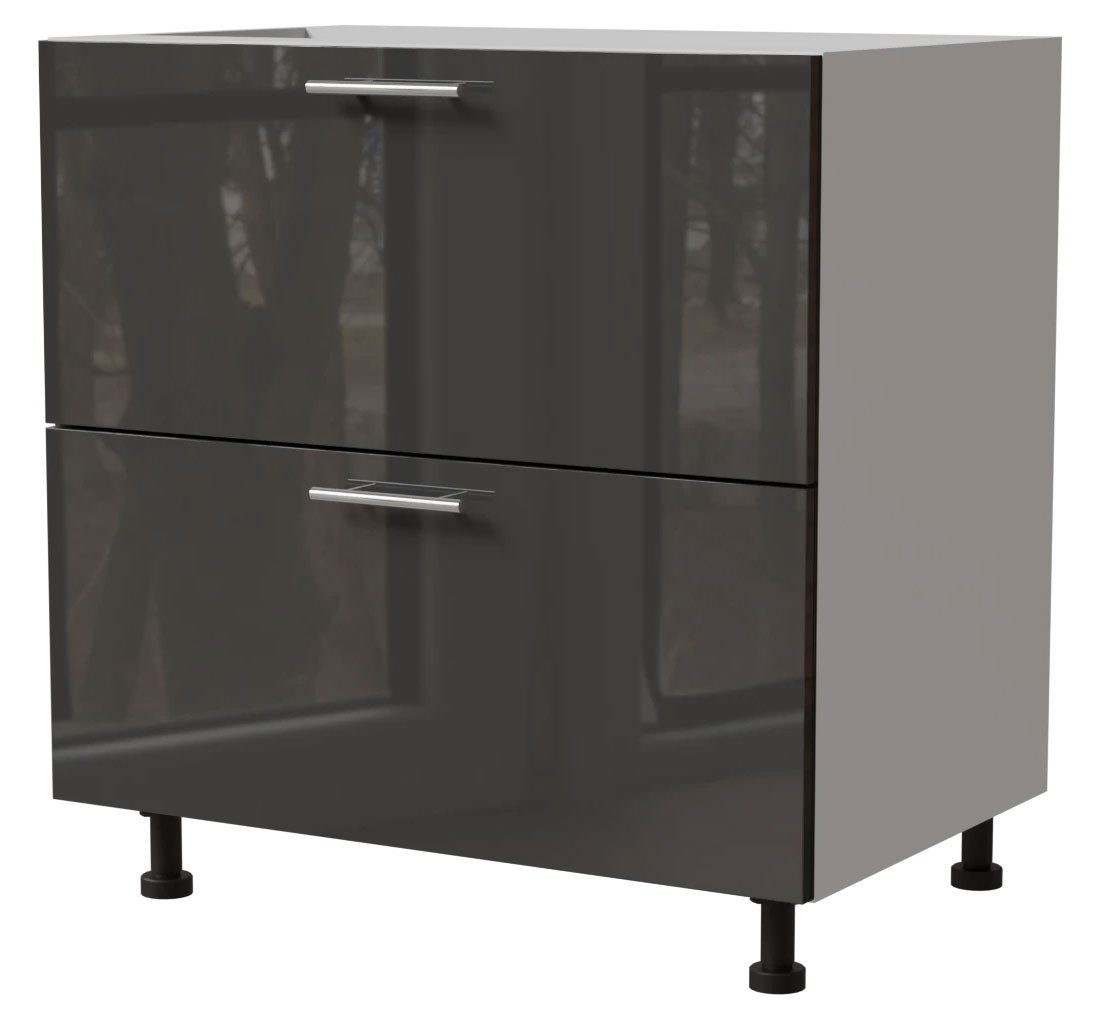 Feldmann-Wohnen Auszugsunterschrank Essen (D2A/90/1A, 2 Schubladen + Innenschublade, HETTICH InnoTech Atira, 1-St., moderne Optik, lackierte Fronten) 90x50x82cm schwarz - graphit Hochglanz (ES-D2A/90/1A)