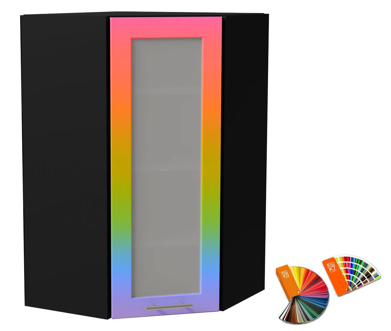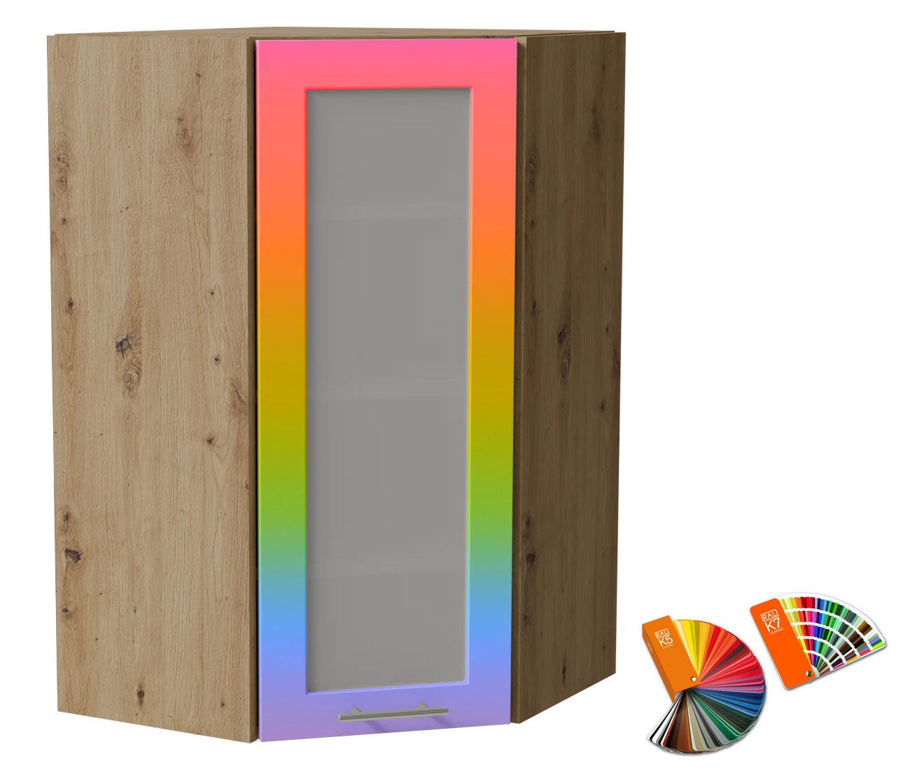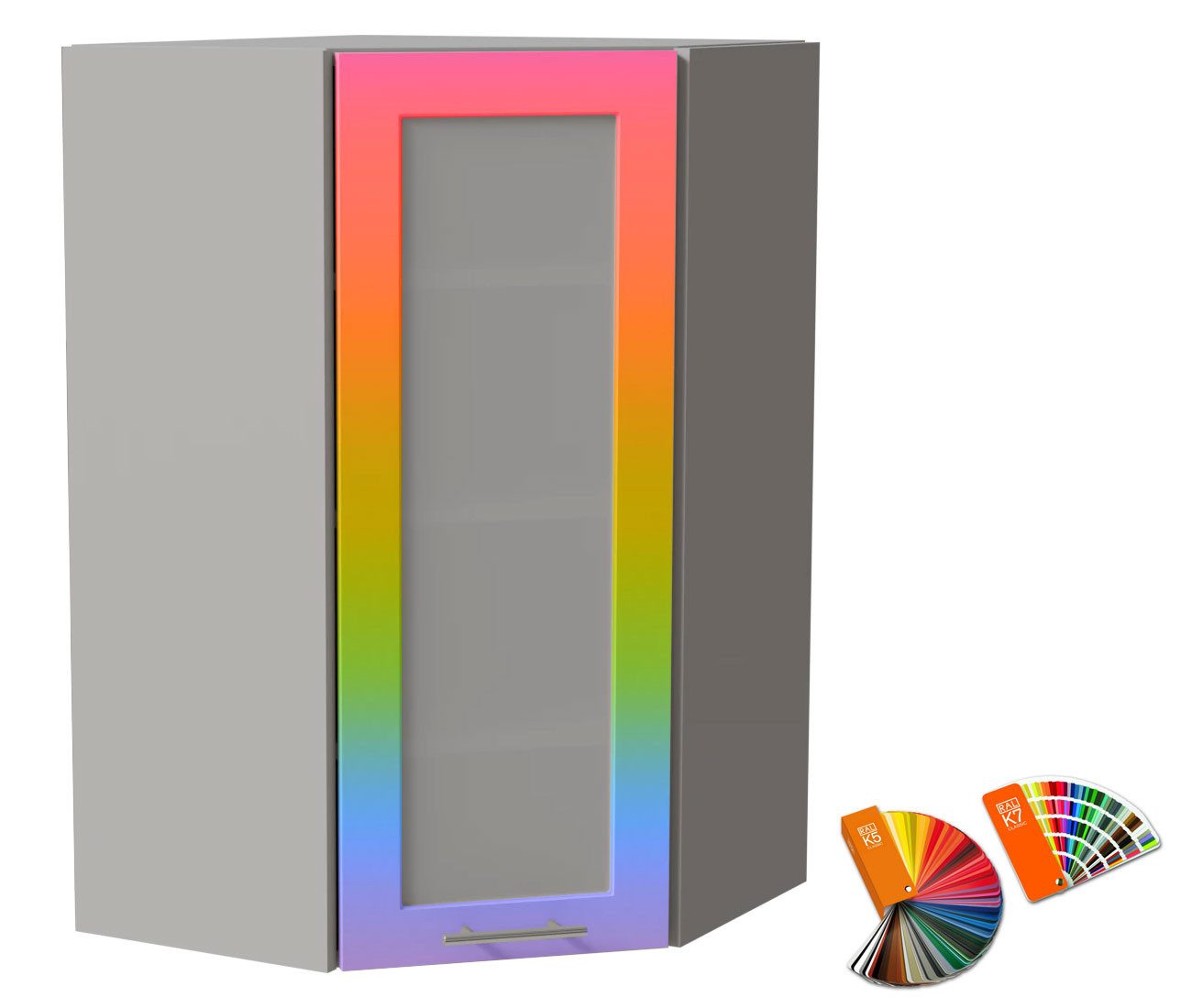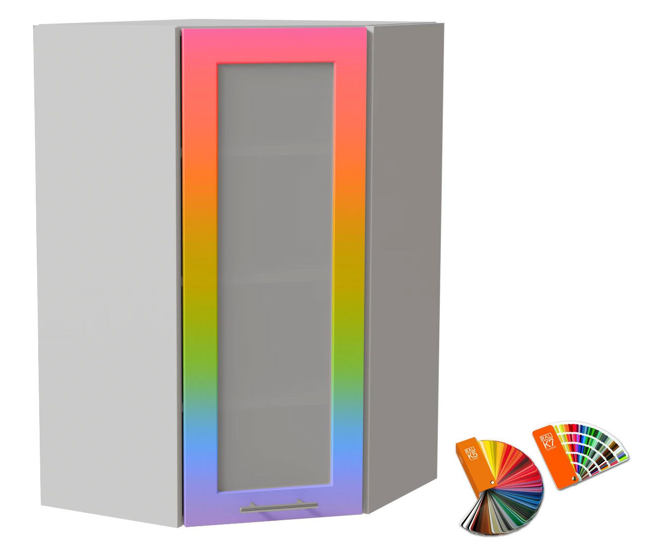 Eckhängeschrank / 1-türig mit Milchglaseinsatz / Soft-Close-Funktion / Fronten lackiert