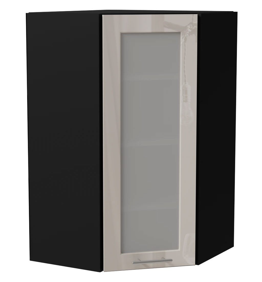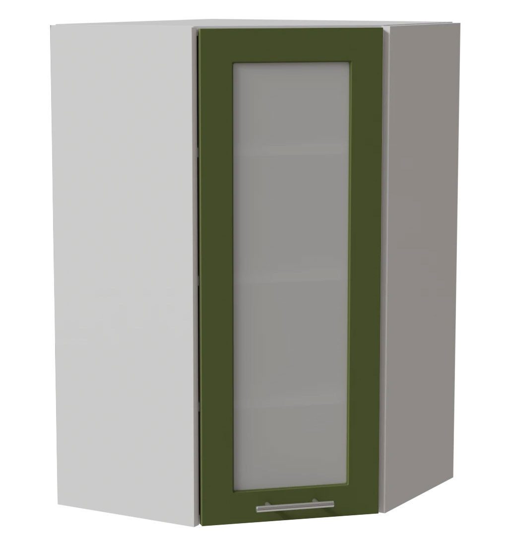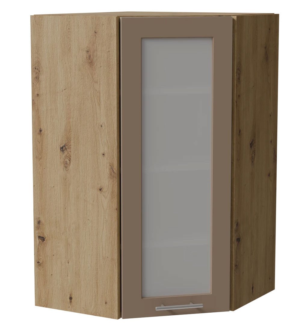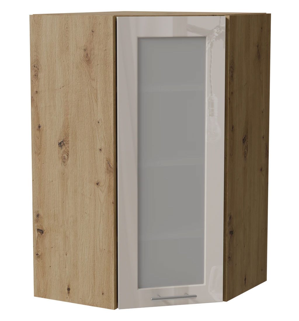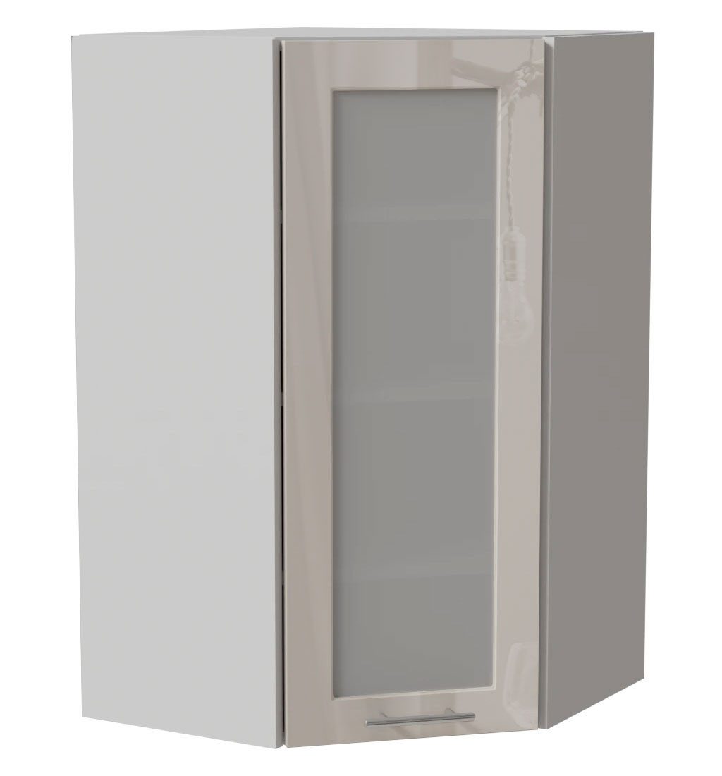 Eckhängeschrank / 1-türig mit Milchglaseinsatz / Soft-Close-Funktion / Fronten lackiert