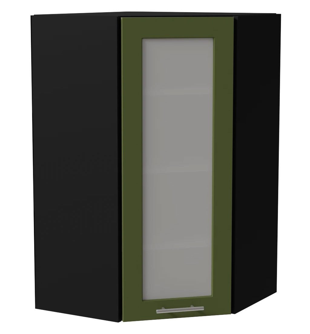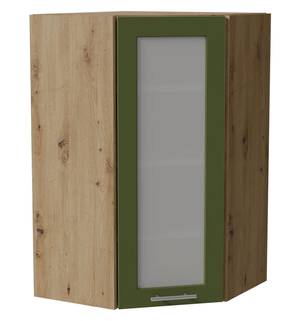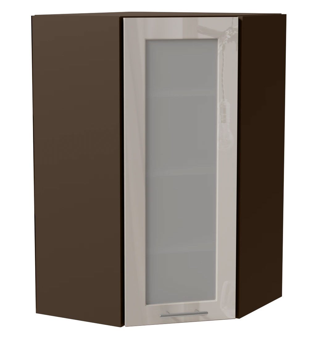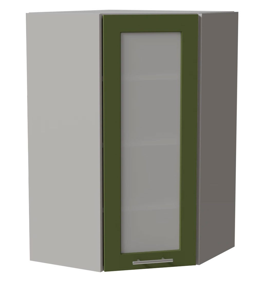 Eckhängeschrank / 1-türig mit Milchglaseinsatz / Soft-Close-Funktion / Fronten lackiert