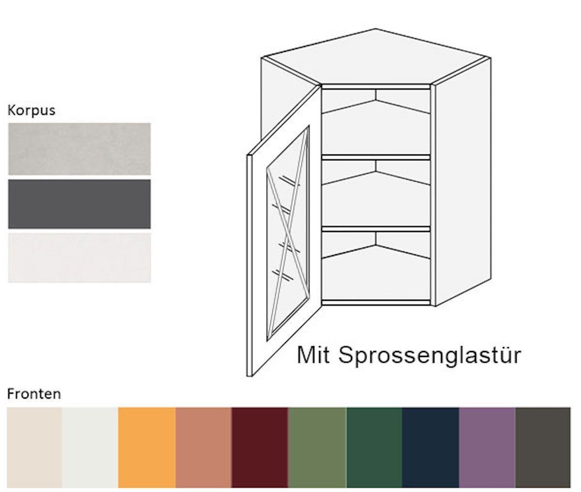 Eck Hängeschrank / Glasfront / Sprossen / Soft-Close Funktion / Fronten matt lackiert