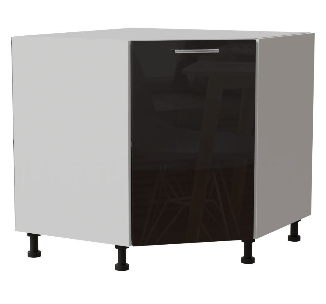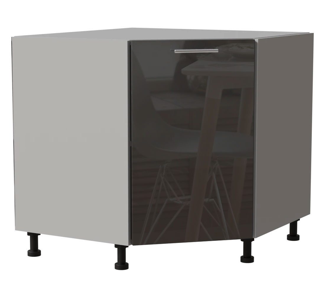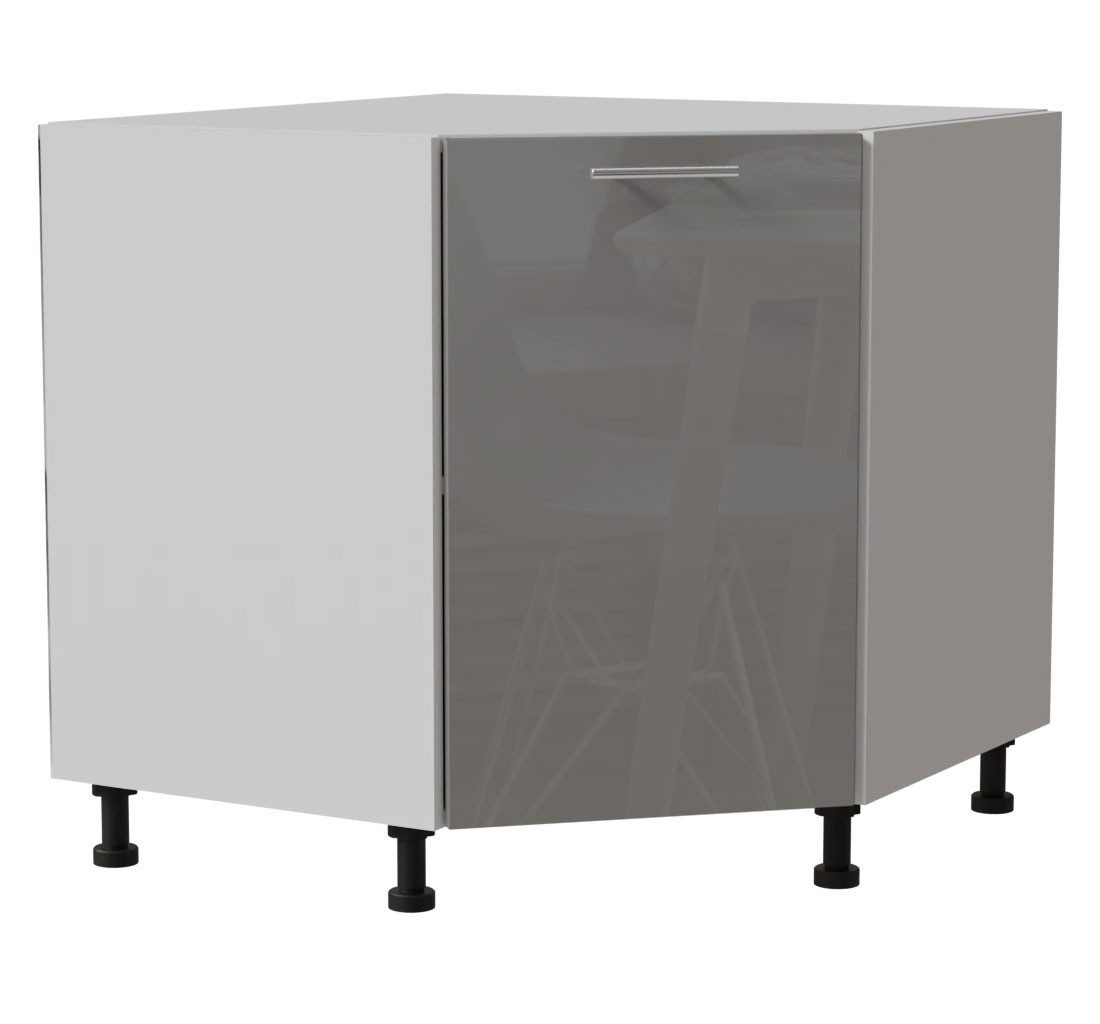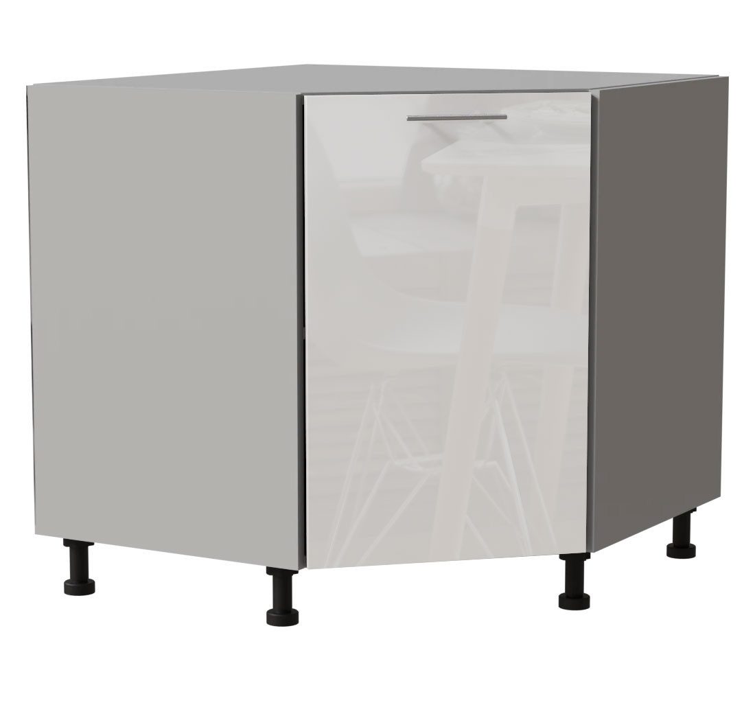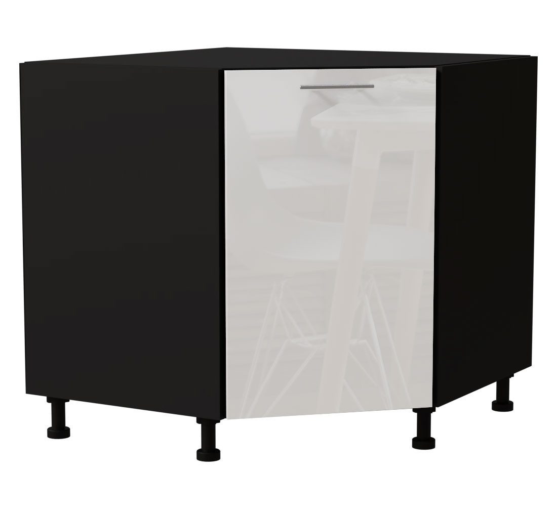 Eckunterschrank / 1-türig / Soft-Close-Funktion / Acrylfronten / Ultrahochglanz