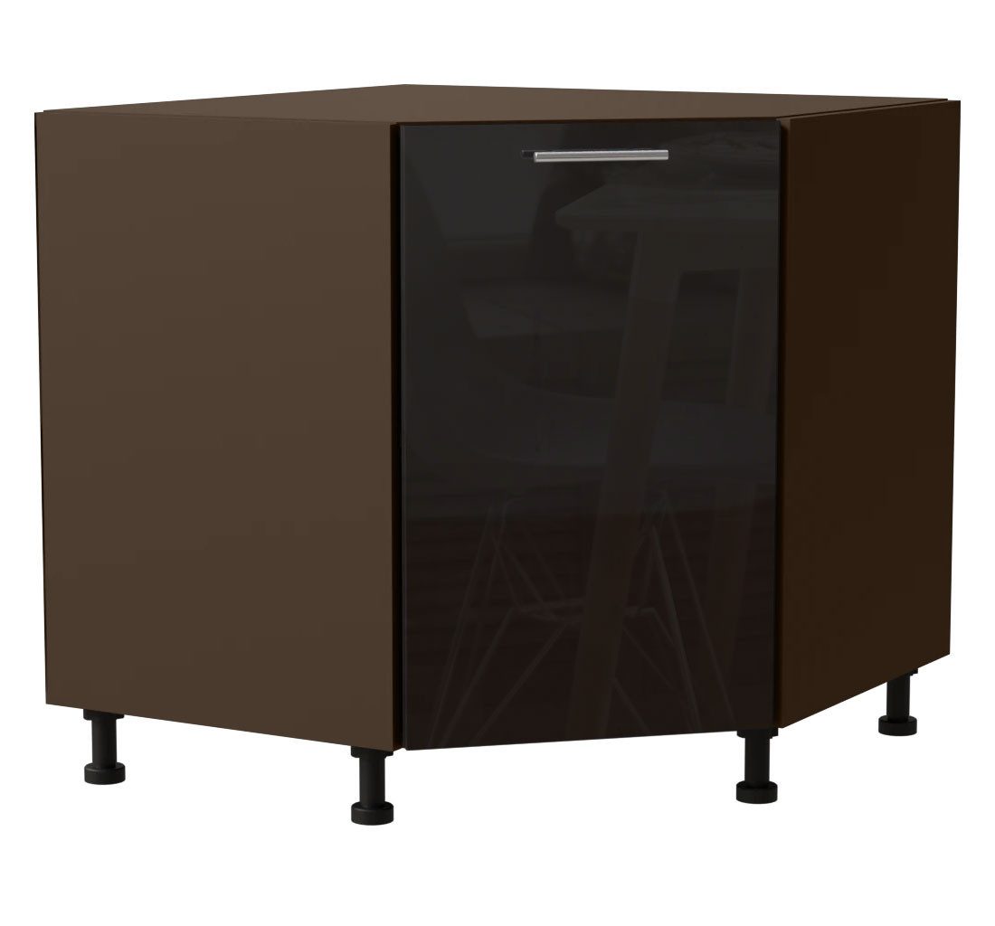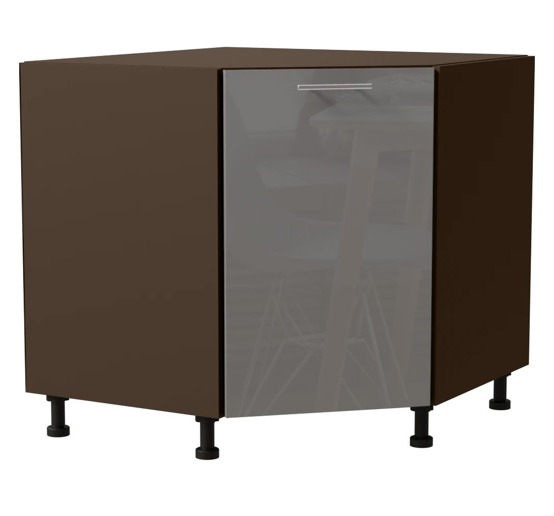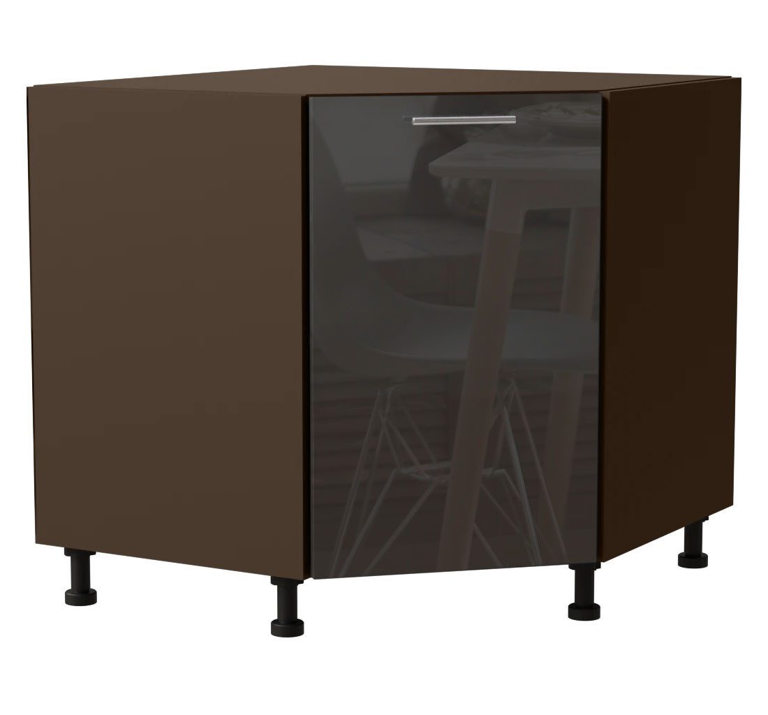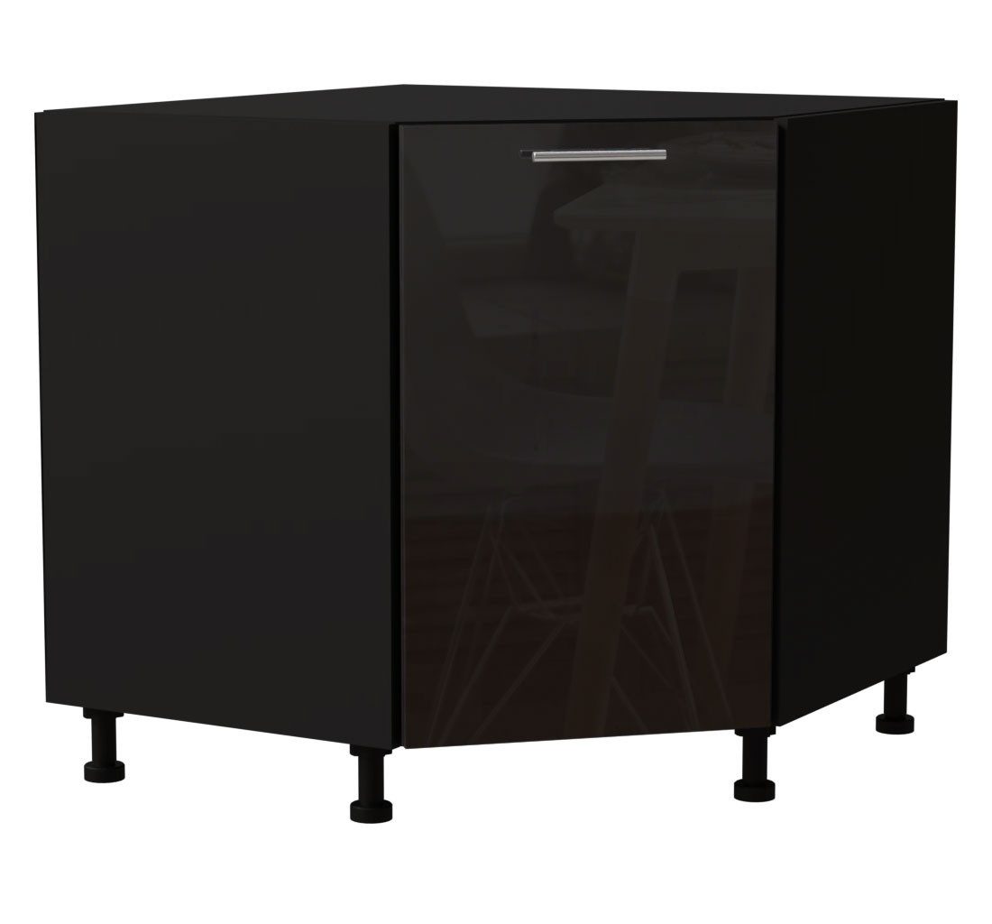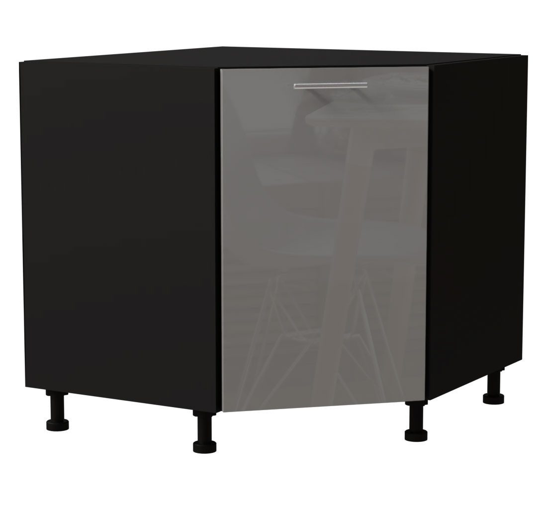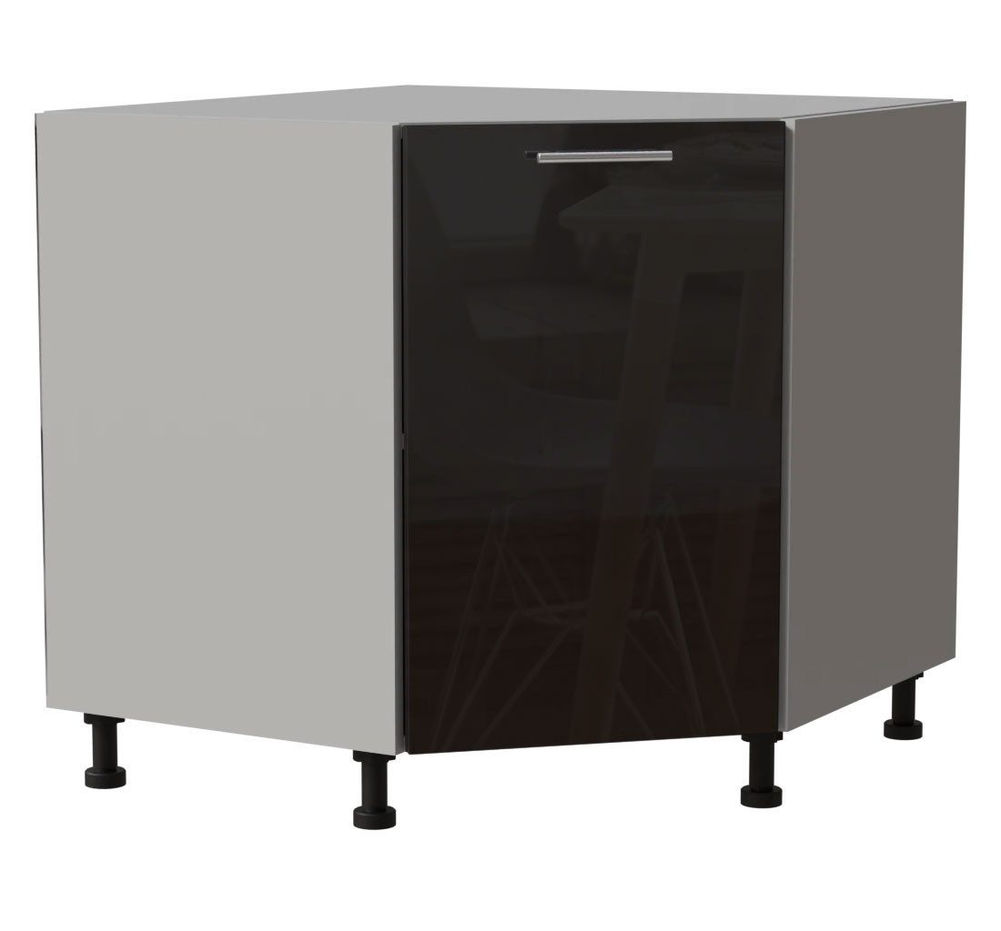 Eckunterschrank / 1-türig / Soft-Close-Funktion / Acrylfronten / Ultrahochglanz