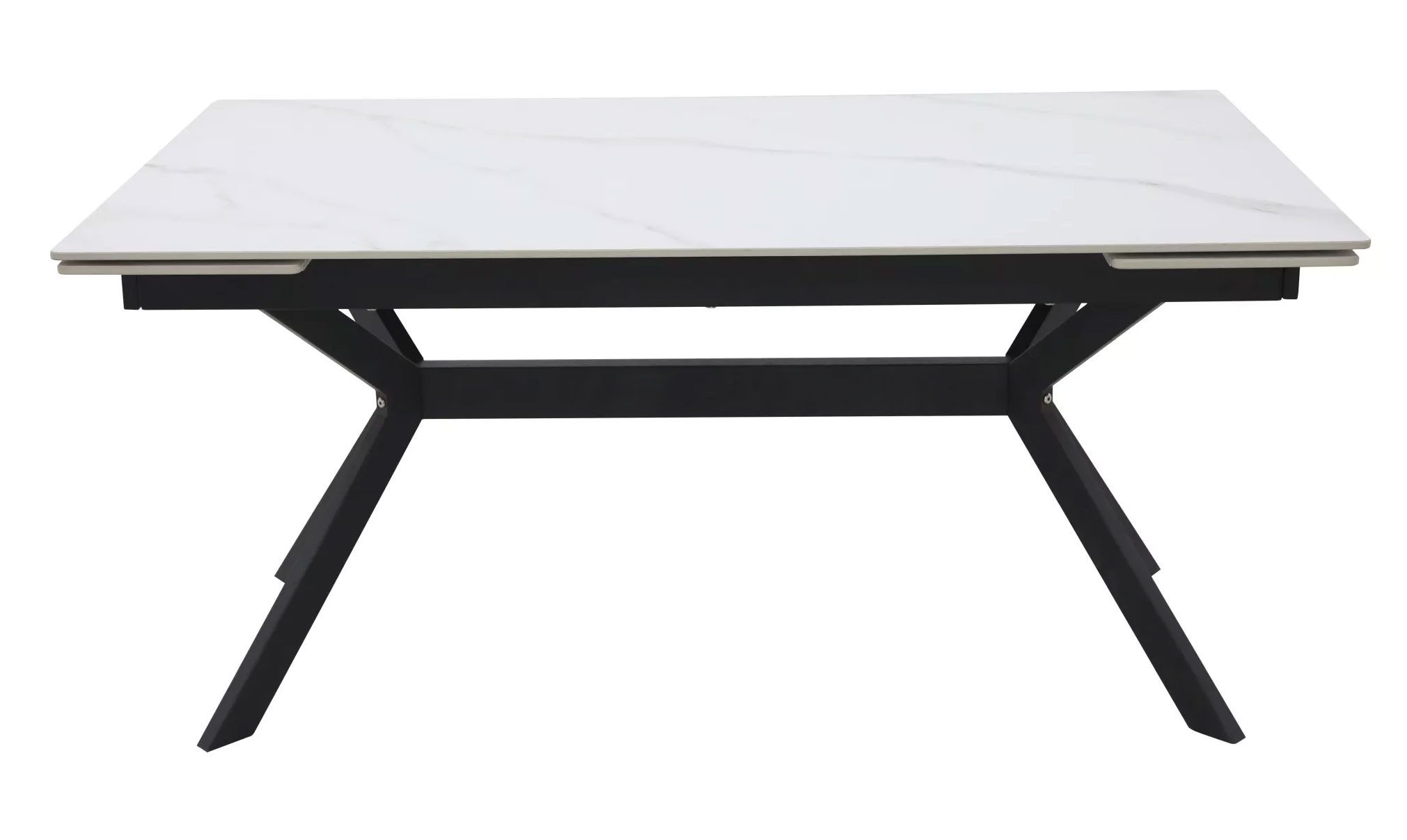 Der moderne Esstisch in einer harmonischen Farbkombination lässt sich hervorragend mit anderen Möbeln dieser Serie kombinieren. Die Tischplatte dieses Designertisches besteht aus einer Schicht italienischer Keramik in Marmor-Optik.