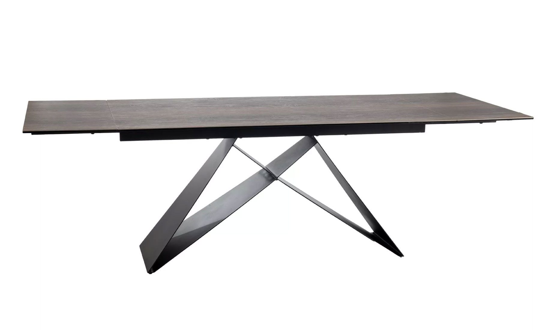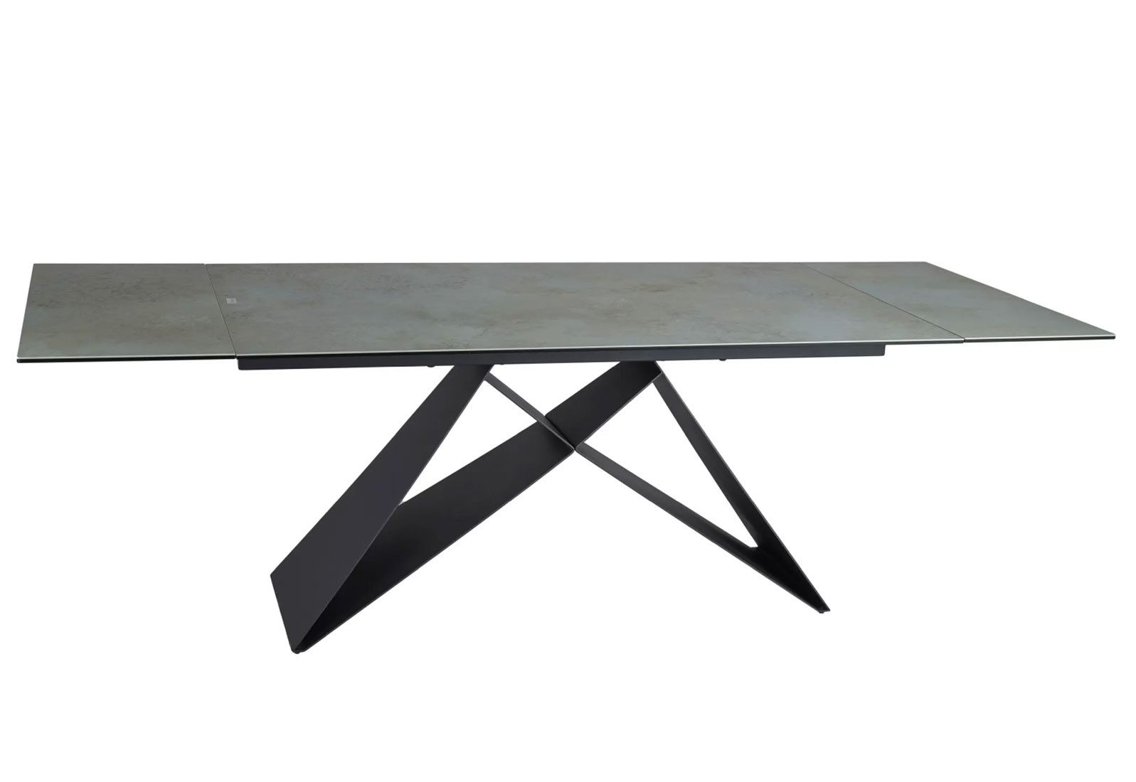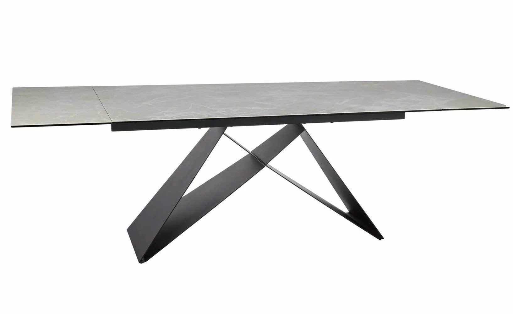 Der moderne Esstisch in einer harmonischen Farbkombination lässt sich hervorragend mit anderen Möbeln dieser Serie kombinieren. Die Tischplatte dieses Designertisches besteht aus einer Kombination aus gehärtetem Glas und einer Schicht italienischer Keramik.