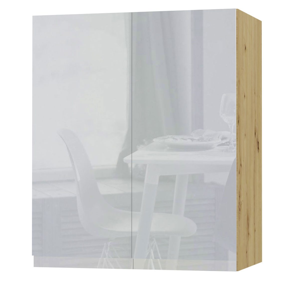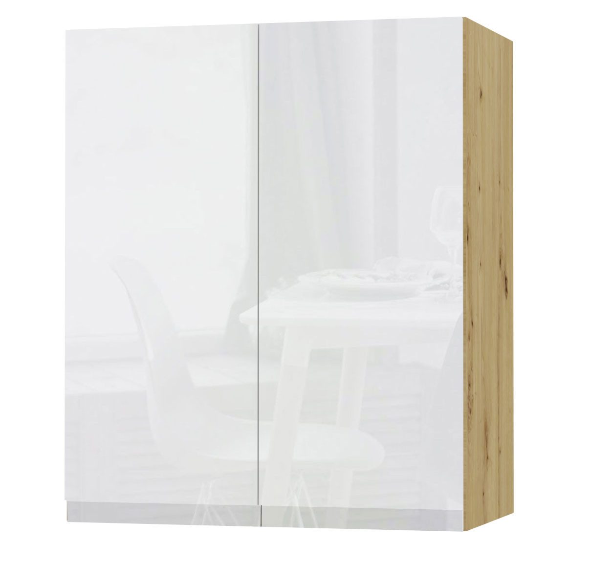 - Korpus Eiche Artisan matt / Front weiß Acryl Hochglanz