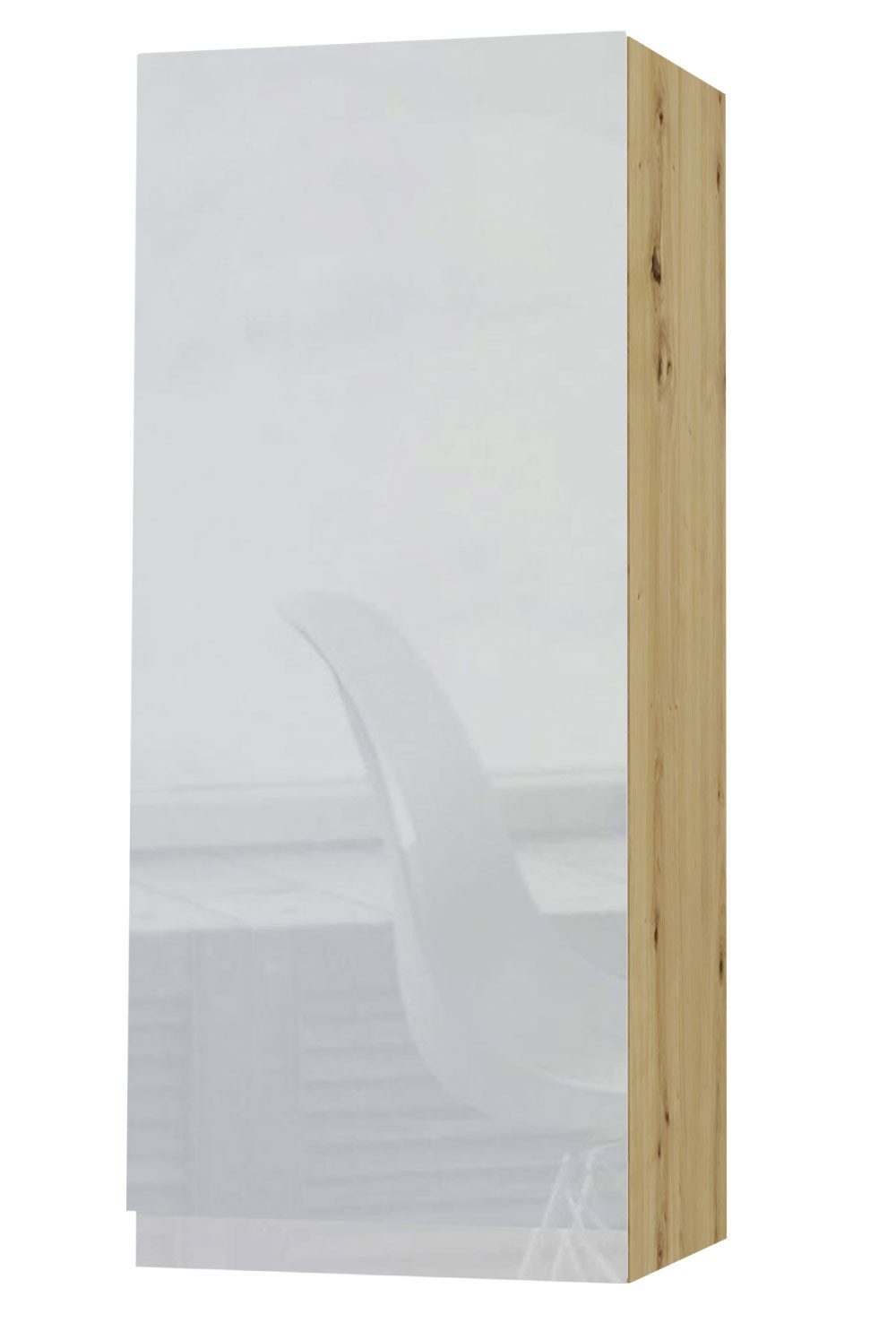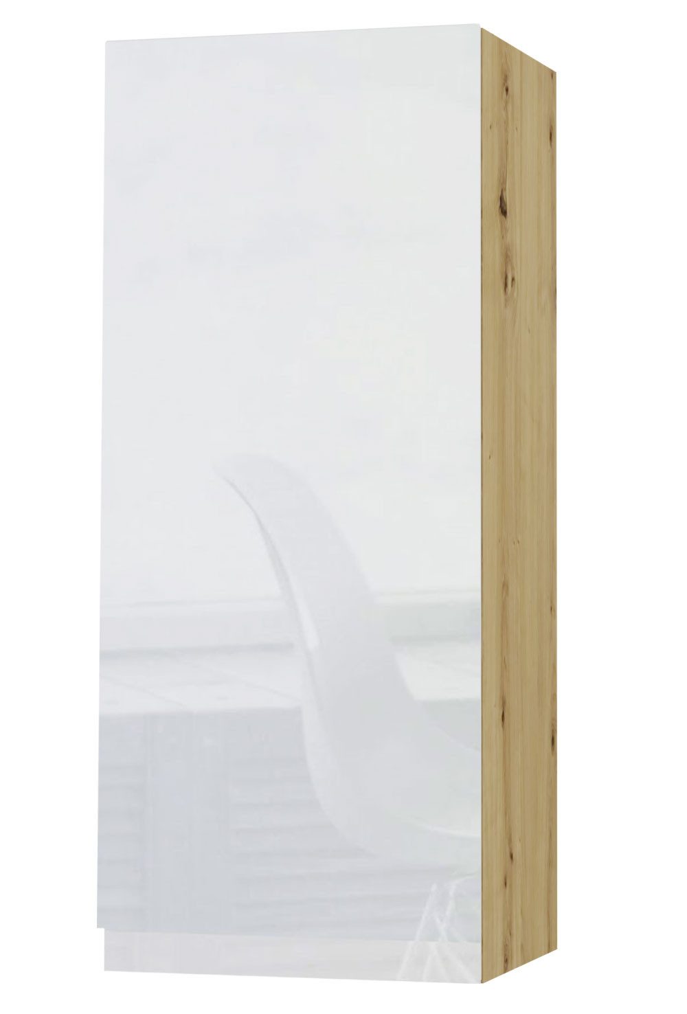 - Korpus Eiche Artisan matt / Front weiß Acryl Hochglanz