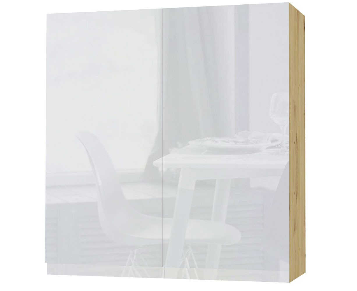 - Korpus Eiche Artisan matt / Front weiß Acryl Hochglanz