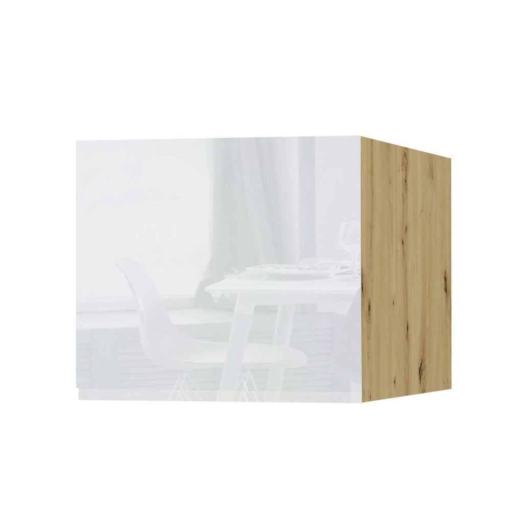- Korpus Eiche Artisan matt / Front weiß Acryl Hochglanz