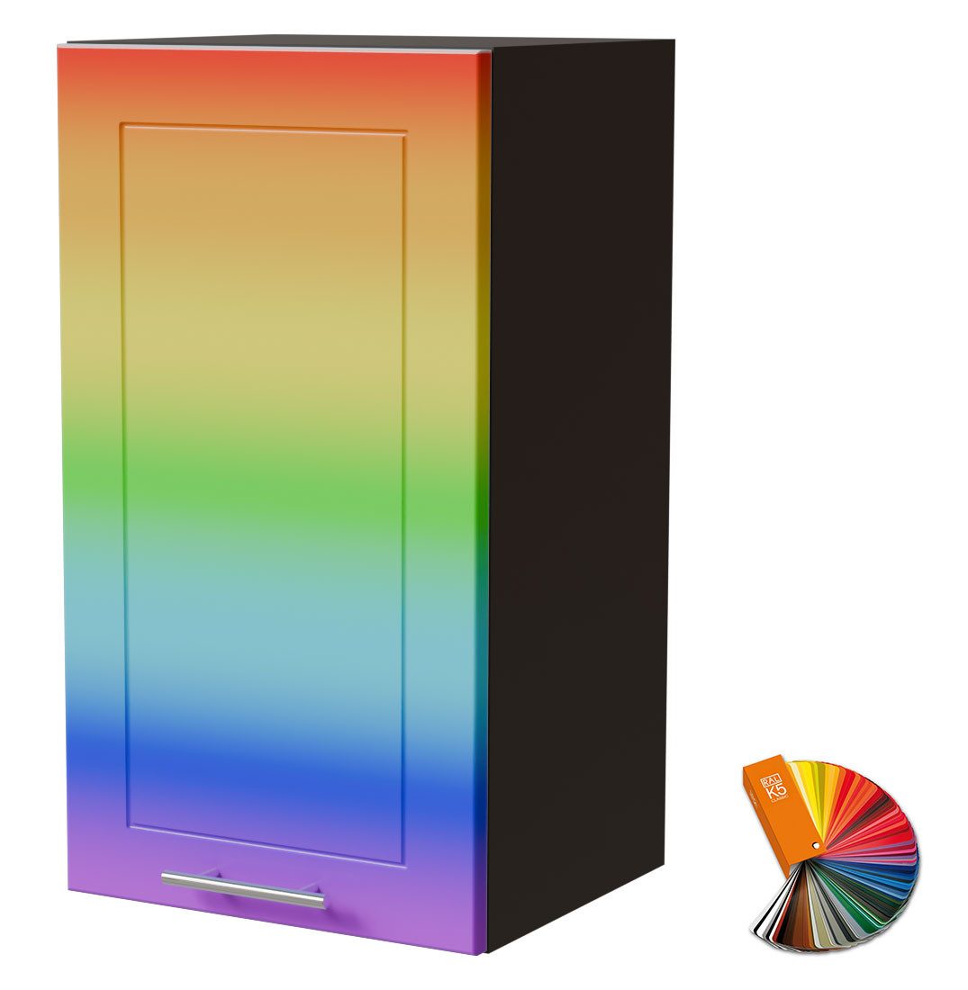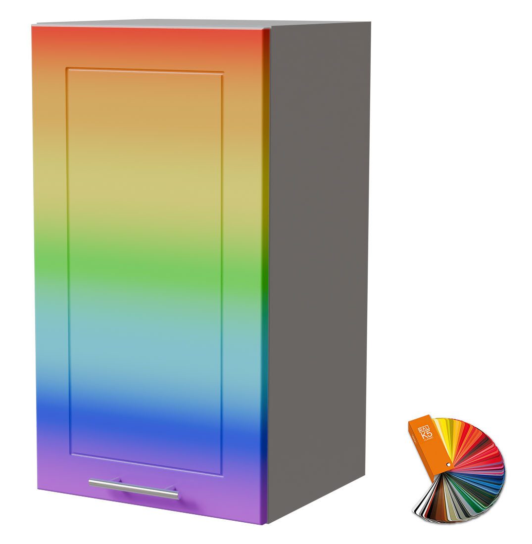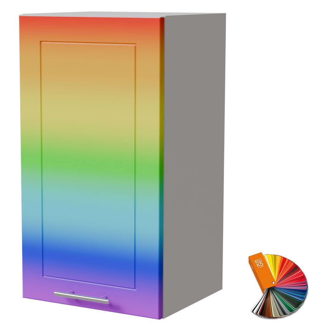 Bitte beachten Sie: Die regenbogenfarbene Schrankfront ist nicht bestellbar. Diese dient lediglich zur Darstellung der Farbenvielfalt, in der dieser Schrank, basierend auf dem K5-Farbfächer, bestellbar ist.
