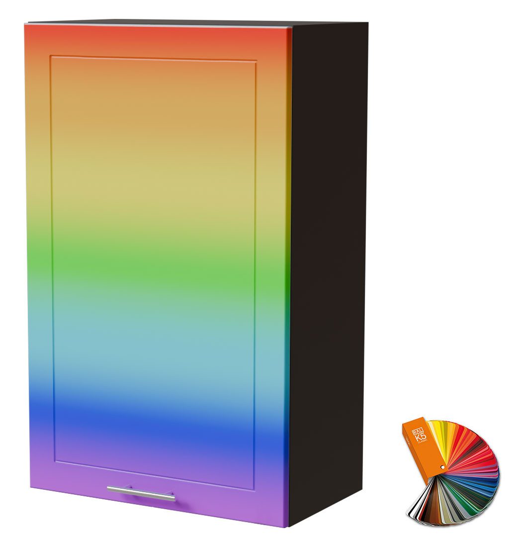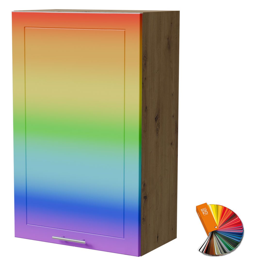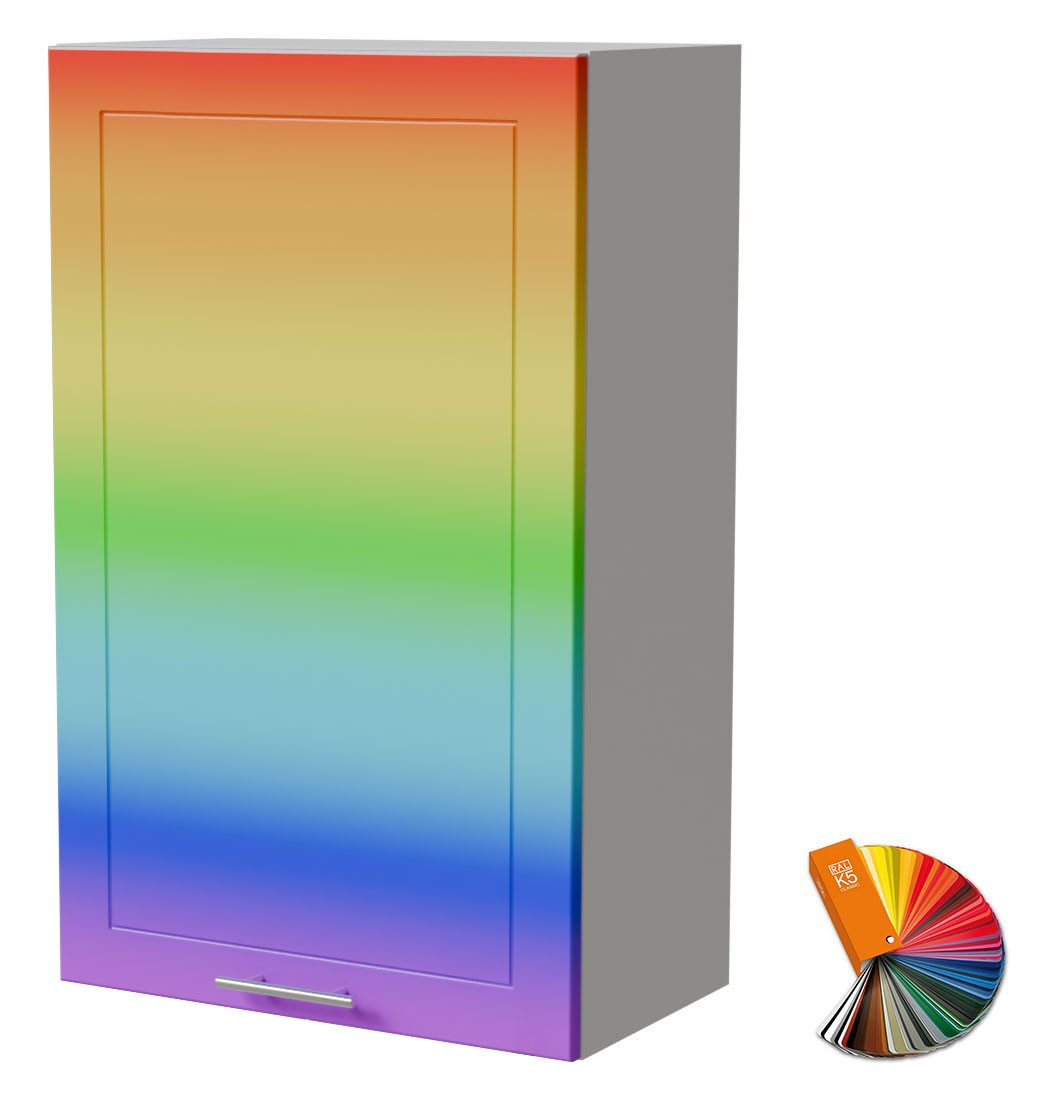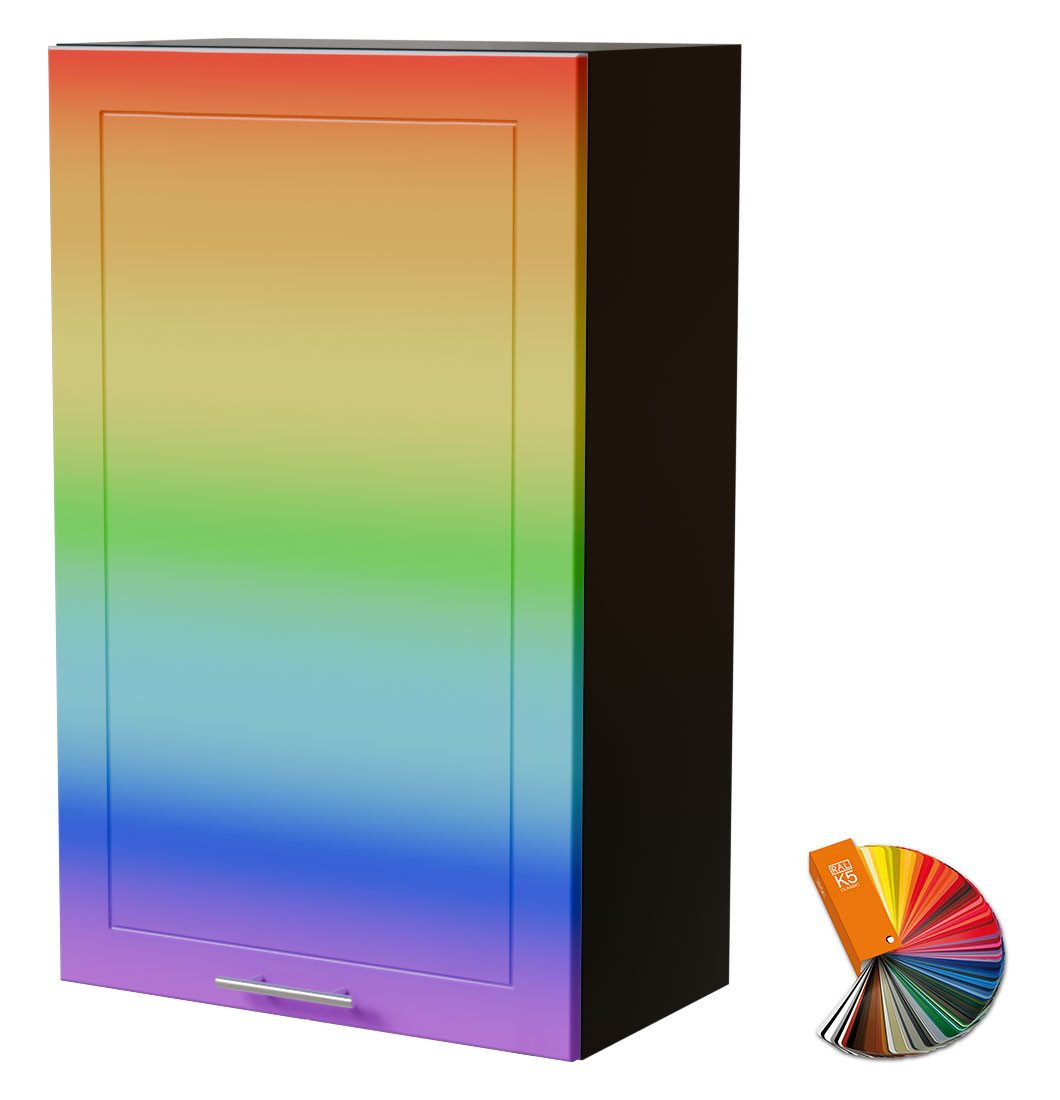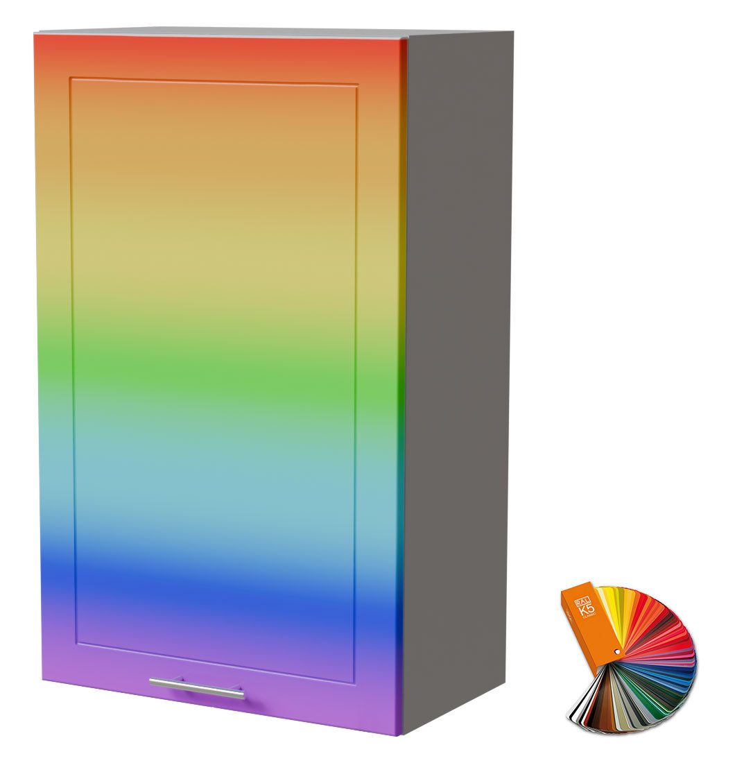 Bitte beachten Sie: Die regenbogenfarbene Schrankfront ist nicht bestellbar. Diese dient lediglich zur Darstellung der Farbenvielfalt, in der dieser Schrank, basierend auf dem K5-Farbfächer, bestellbar ist.