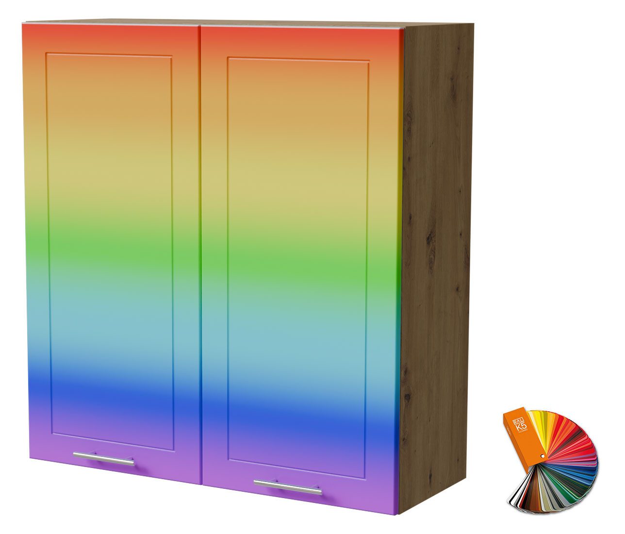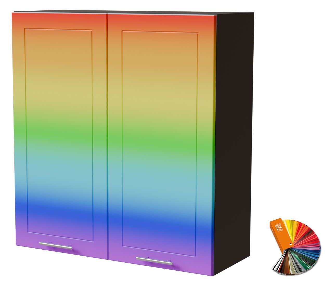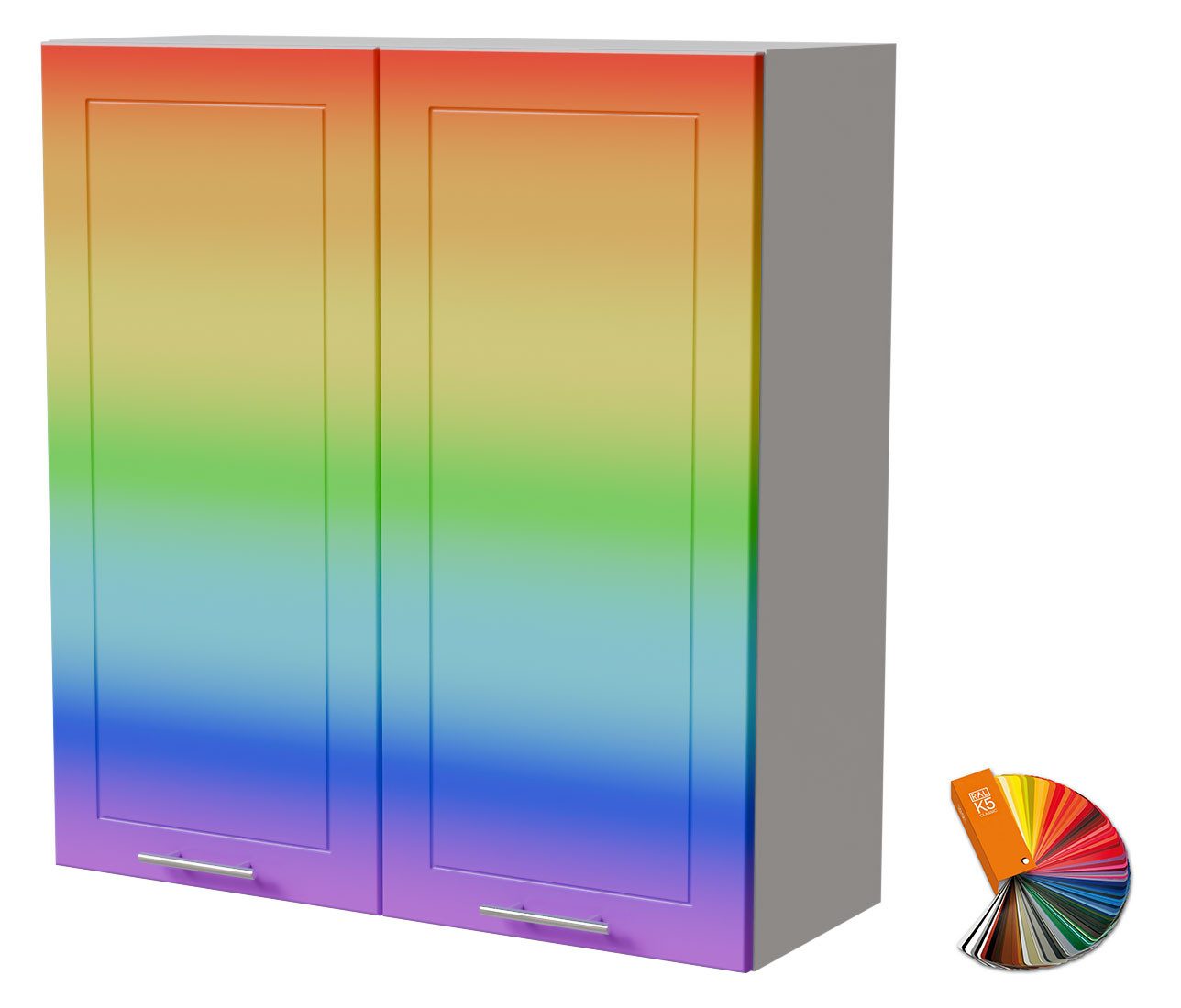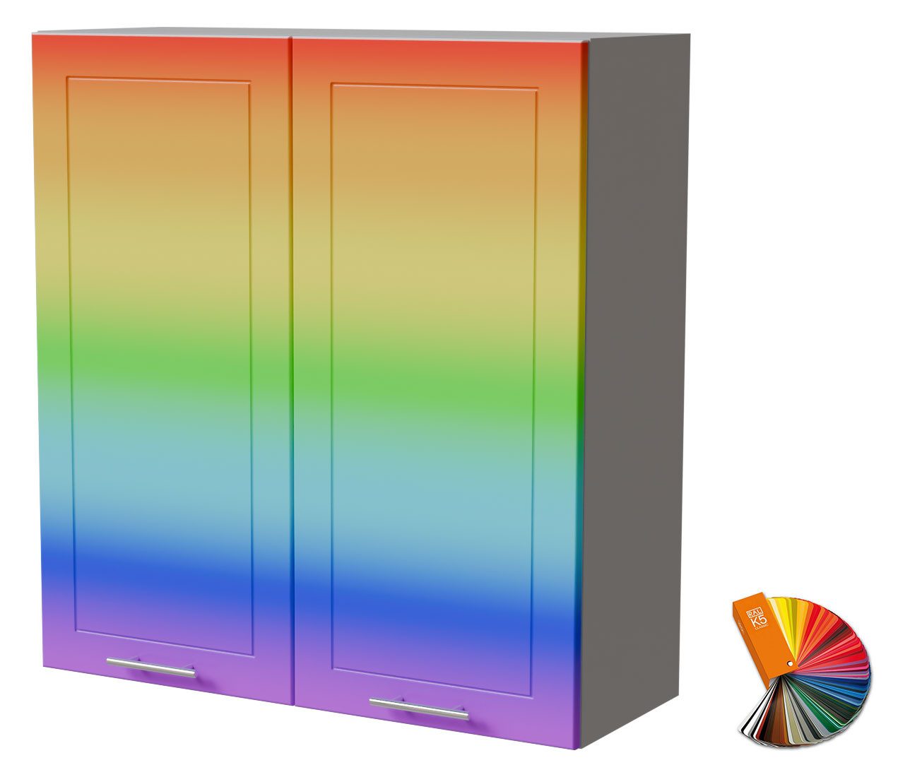 Bitte beachten Sie: Die regenbogenfarbene Schrankfront ist nicht bestellbar. Diese dient lediglich zur Darstellung der Farbenvielfalt, in der dieser Schrank, basierend auf dem K5-Farbfächer, bestellbar ist.