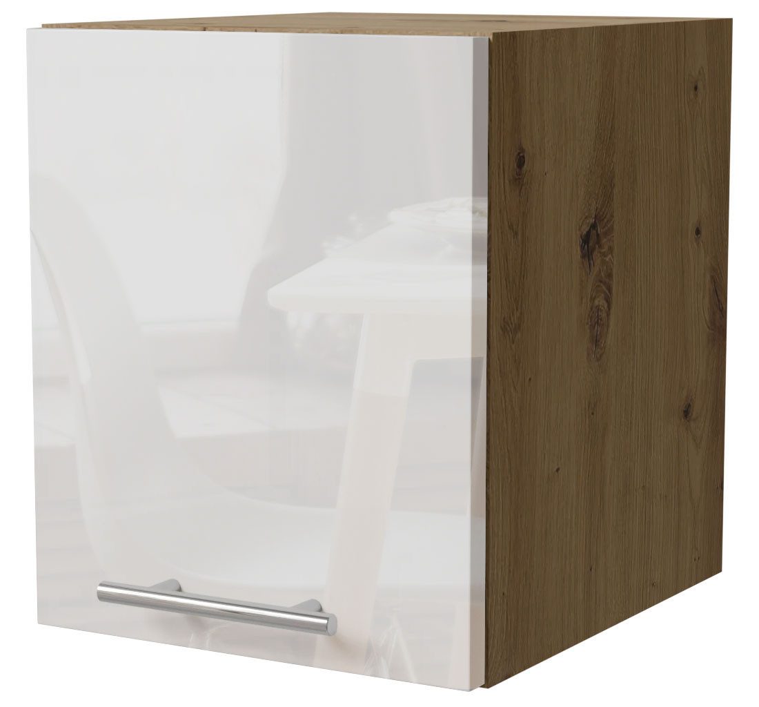 - Korpus Eiche Artisan matt / Front weiß Hochglanz