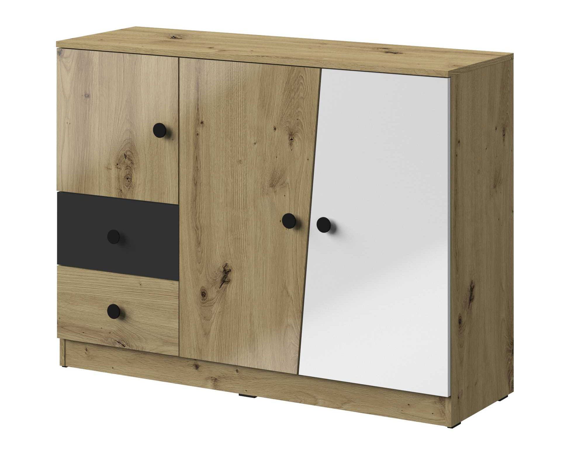 Farbe | Eiche Artisan / weiß - schwarz matt / Griff schwarz |