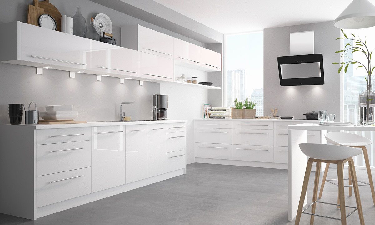 Küchenzeile der Serie Brerra mit lackierten Fronten