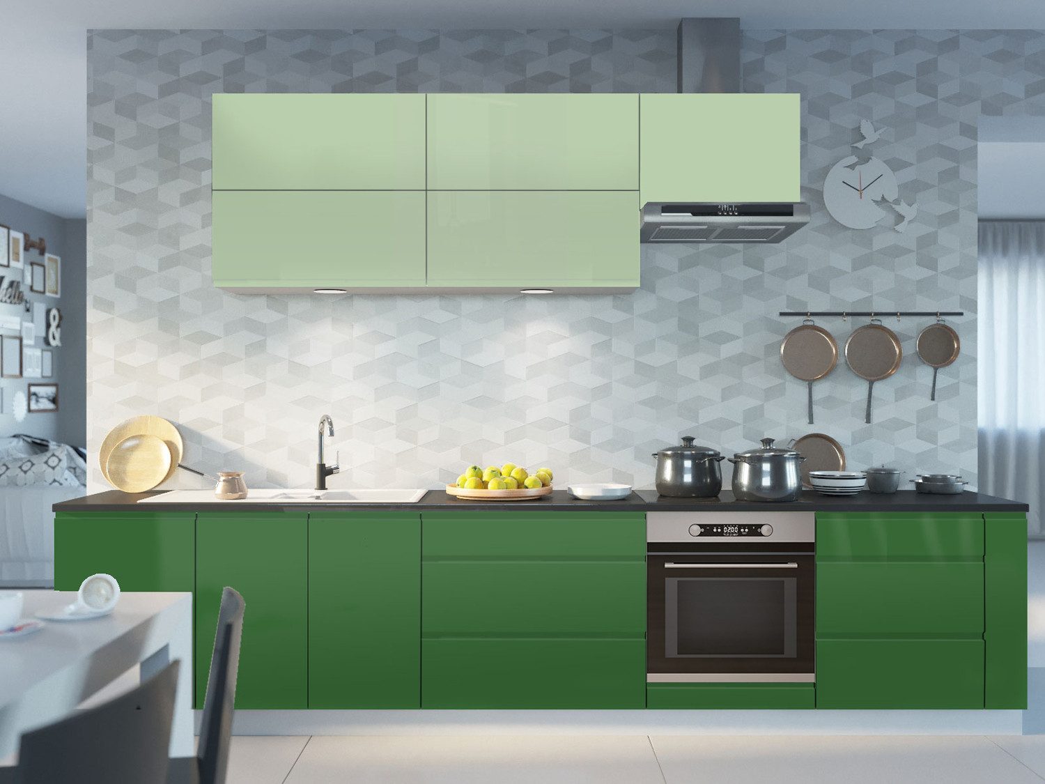 - Fronten: Hängeschränke RAL 6019-GL (weißgrün) / Unterschränke RAL 6001-GL (smaragdgrün) (K7) Hochglanz lackiert