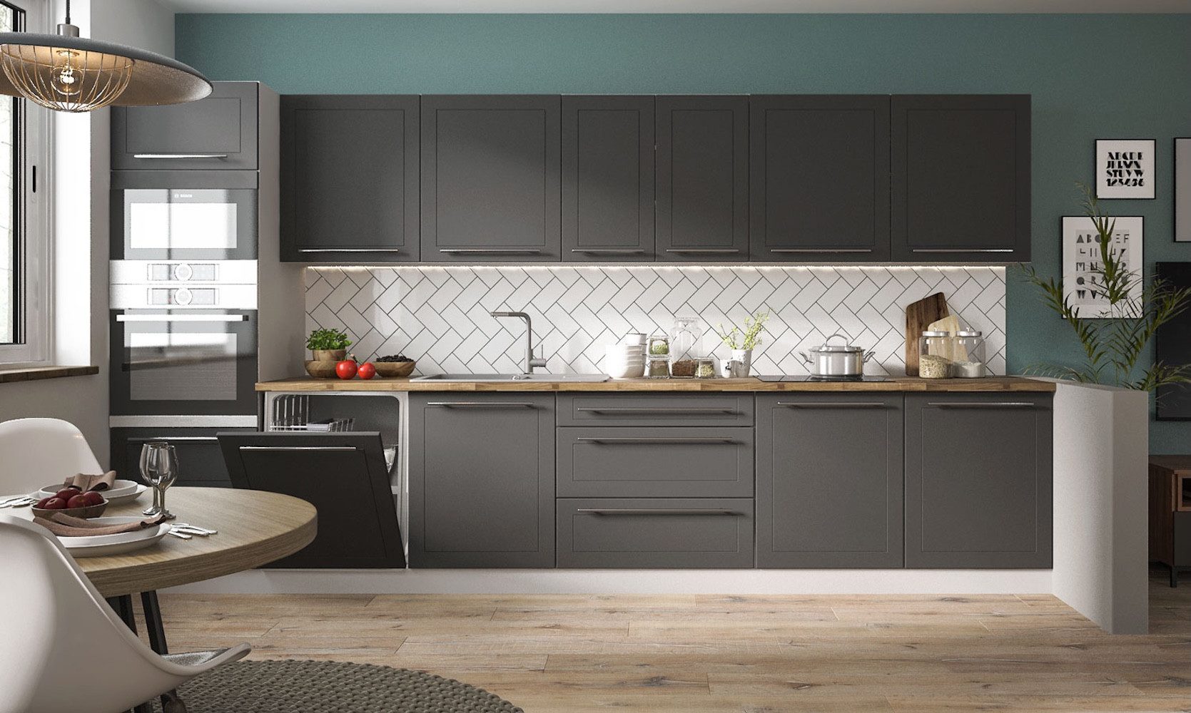 Schaffen Sie sich ein behagliches Küchenambiente mit dieser modernen Küchenzeile der Serie Kvantum.